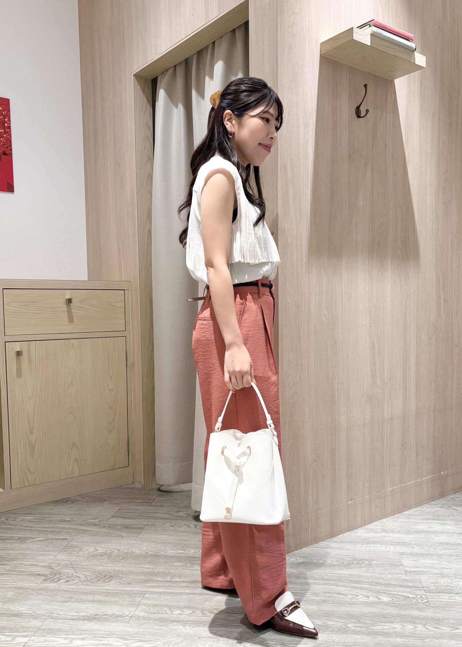 穴がなく巻きつけるタイプでボトムに使用したり、ウエストマークにしたりすることもオススメですよ。 -