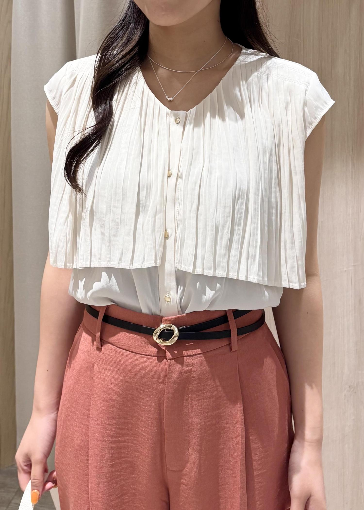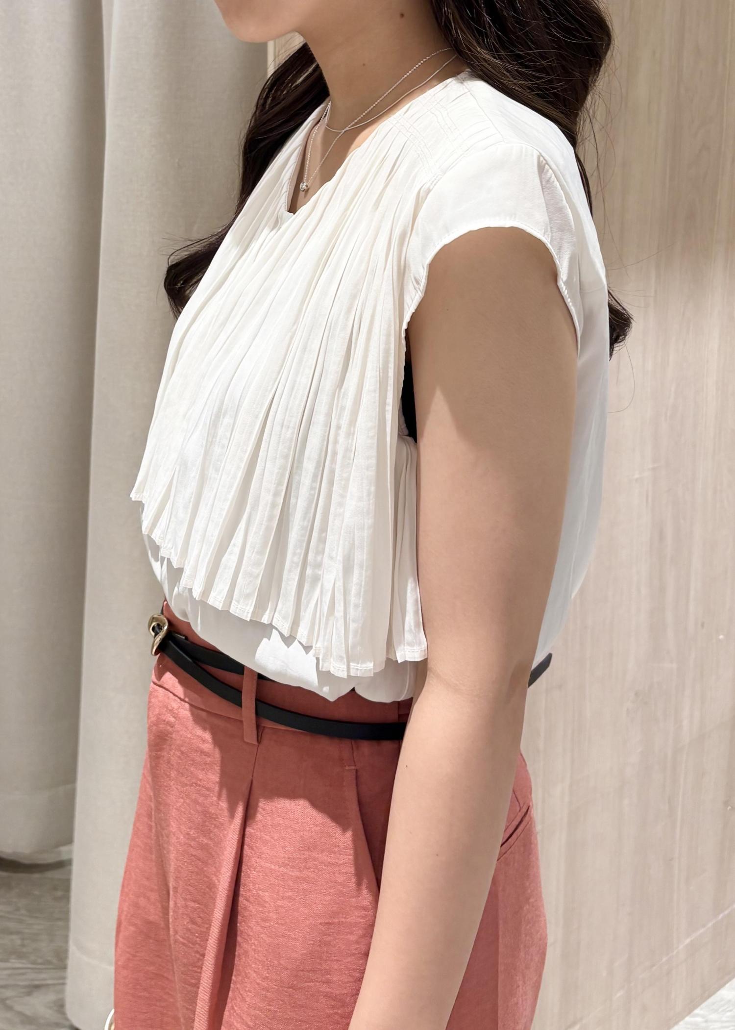 アウトレットVISプリーツデザインブラウス/通勤対応キナリ / F¥2,745レビュー胸周りの揺れるプリーツが女性らしさを演出してくれます。