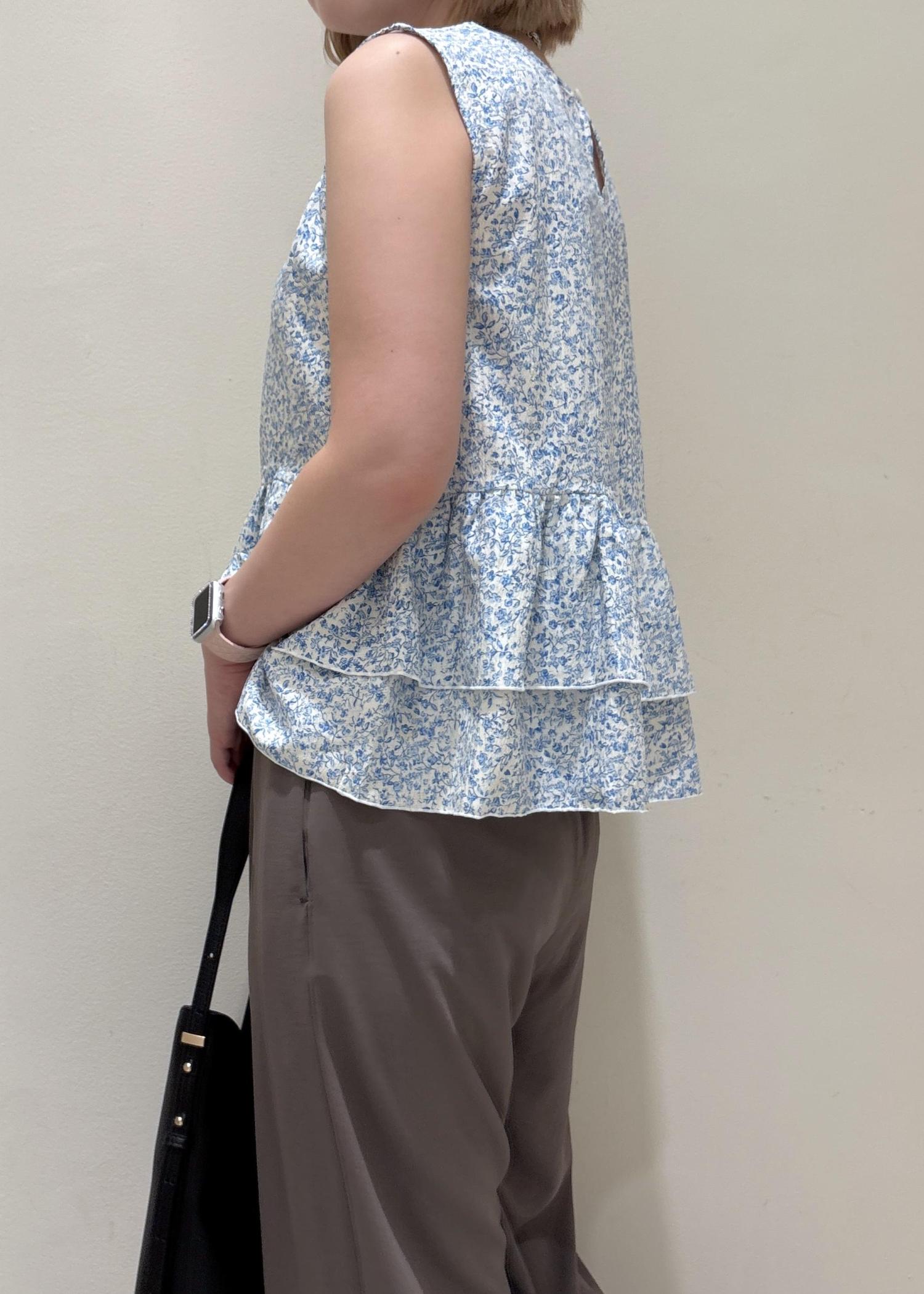 アウトレットROPÉ PICNIC小花柄ティアードゼロスリーブブラウスブルー / 38¥1,997レビュー2段のフリルデザインが、フェミニンな印象にしてくれます。