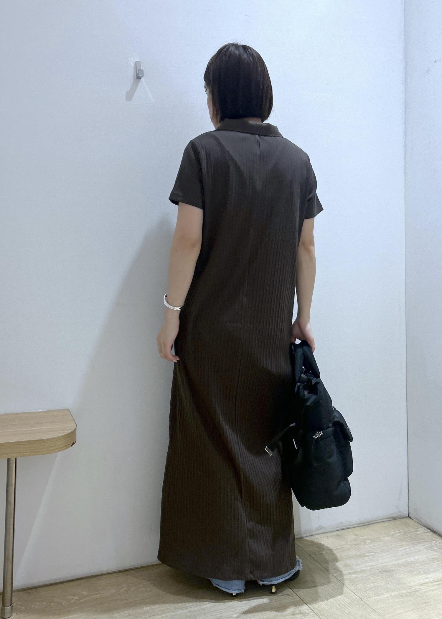 VISポロ衿ランダムリブワンピースダークブラウン / F¥4,612レビューぴったりしすぎず、程よいゆとりがあるリブワンピースです。