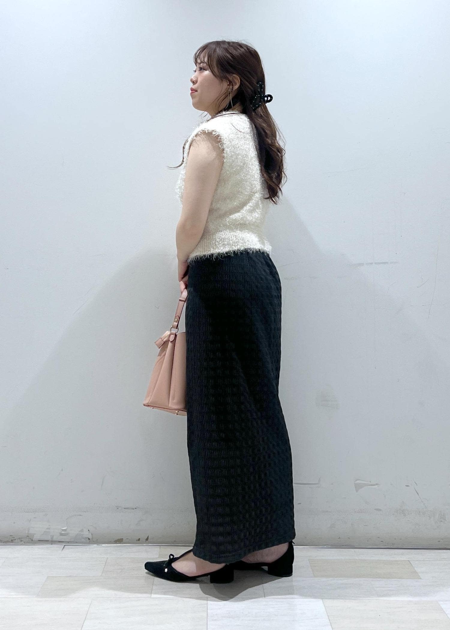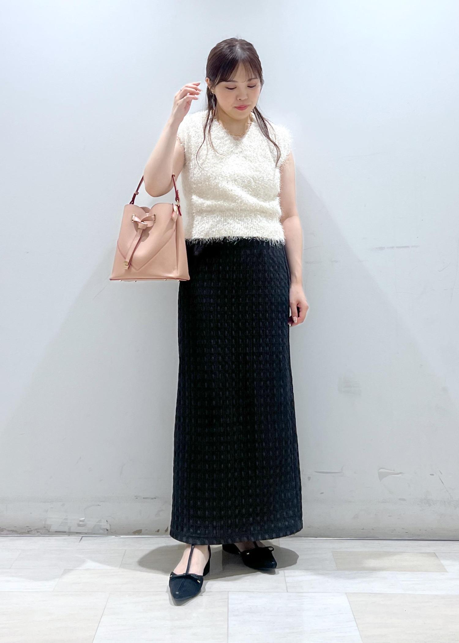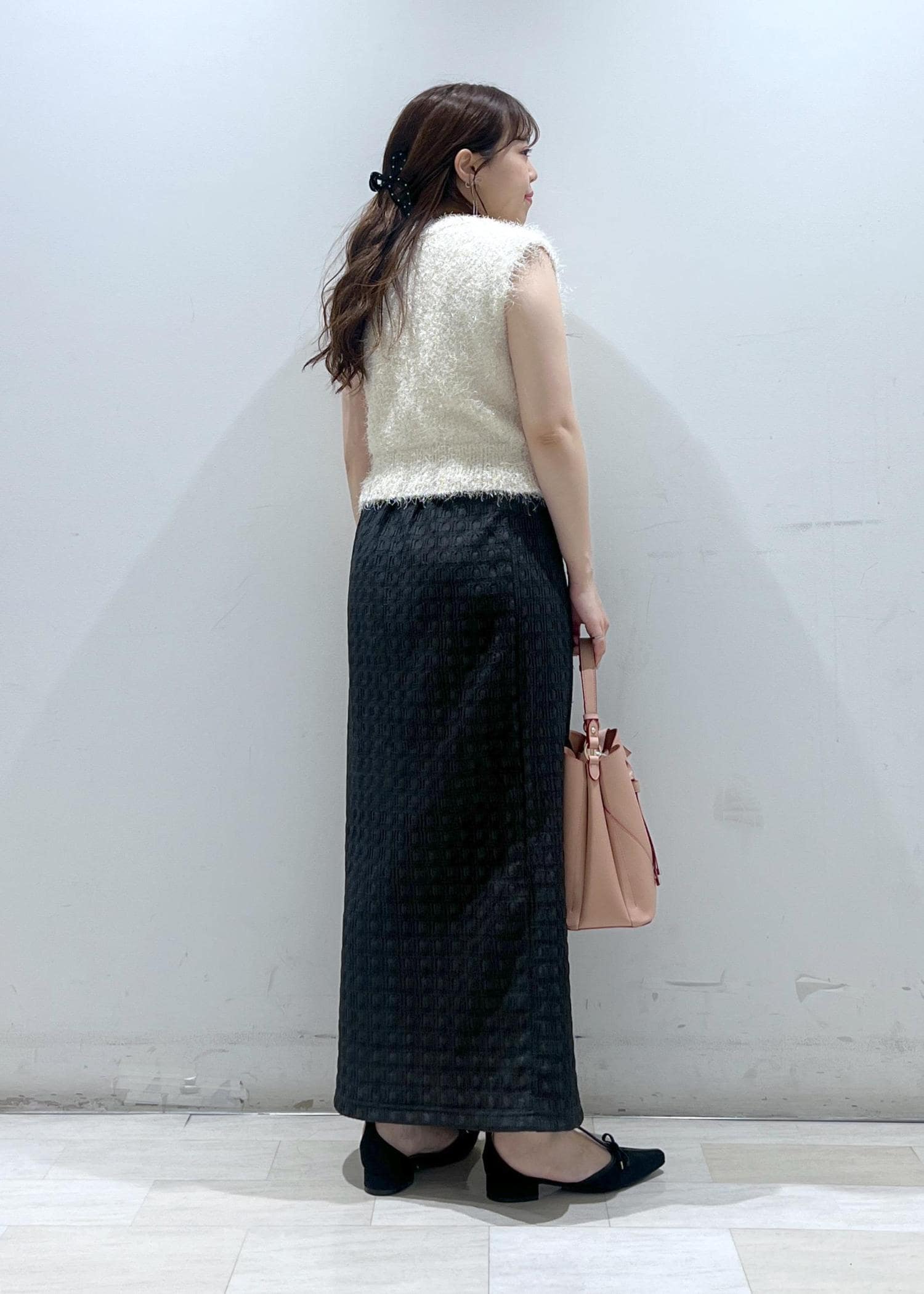 ジャガードのポコポコした素材感がおしゃれなタイトスカート。