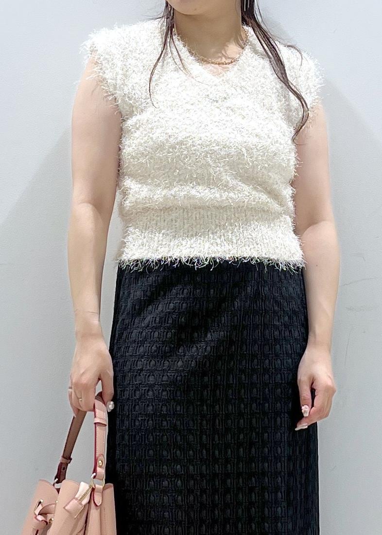 フェザーヤーンの素材感が今時期から一歩先の秋らしい雰囲気を楽しめます。
