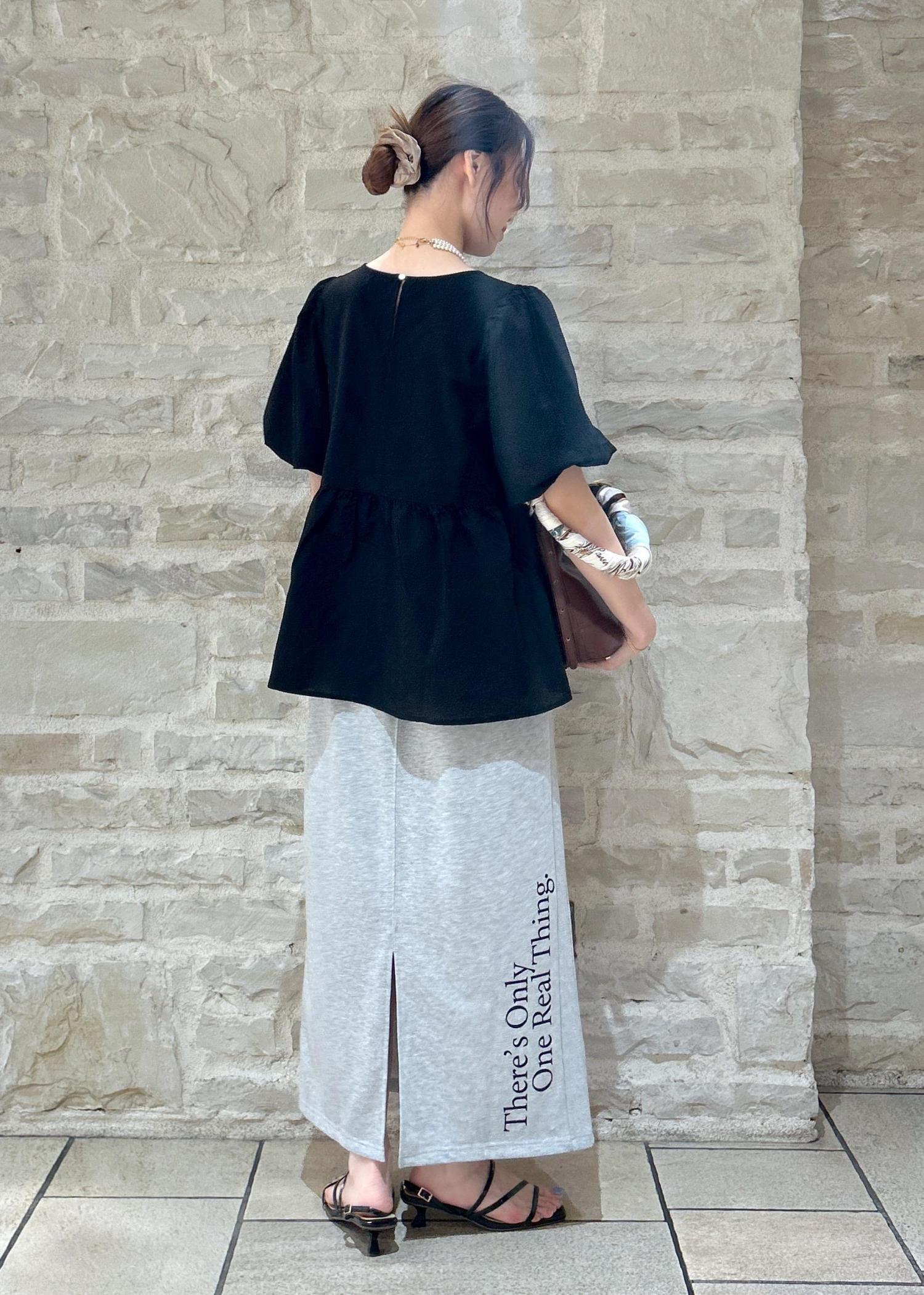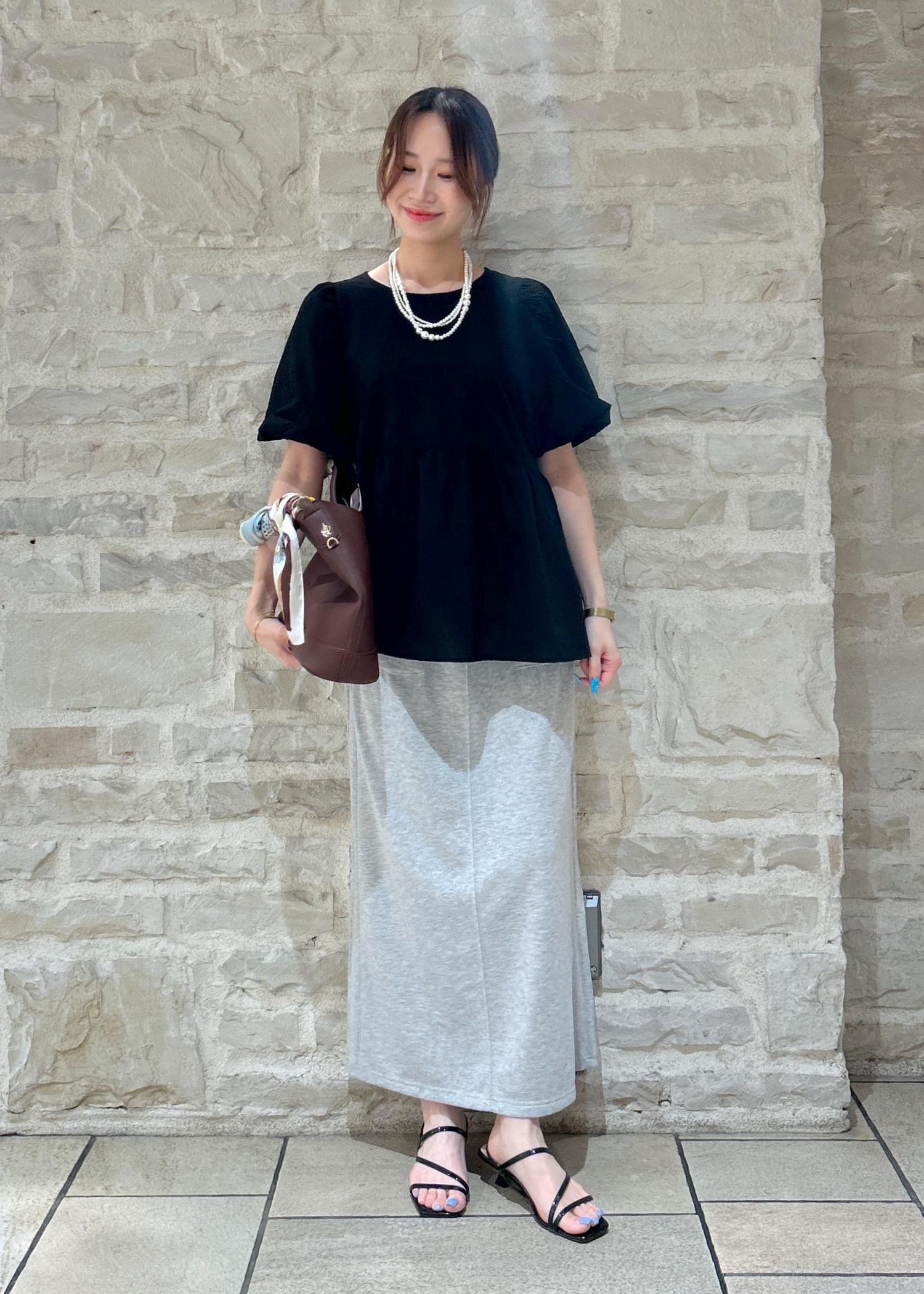 ペプラムバルーンブラウスにCoca-Colaのスカートで大人カジュアルなスタイリングにしました。