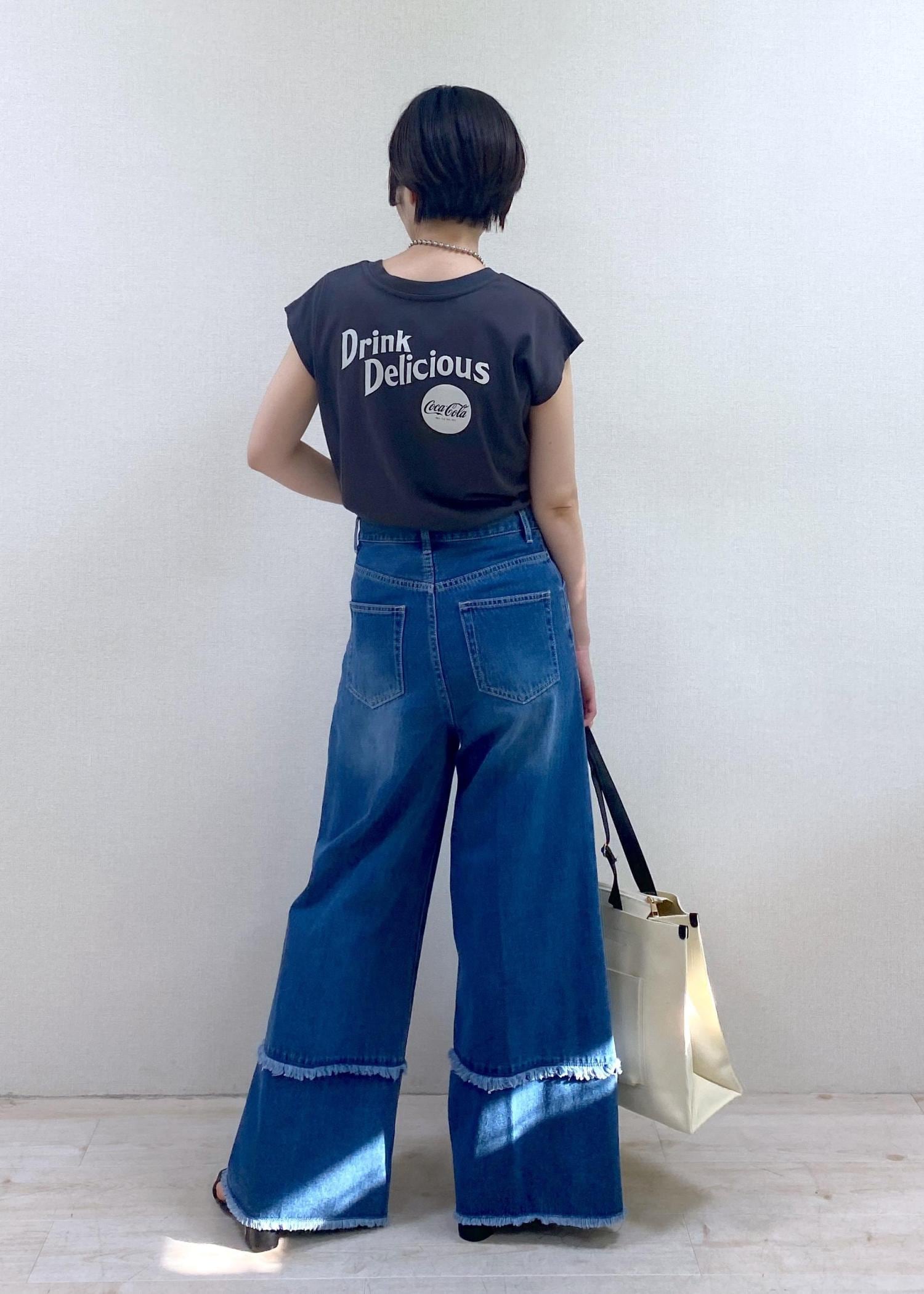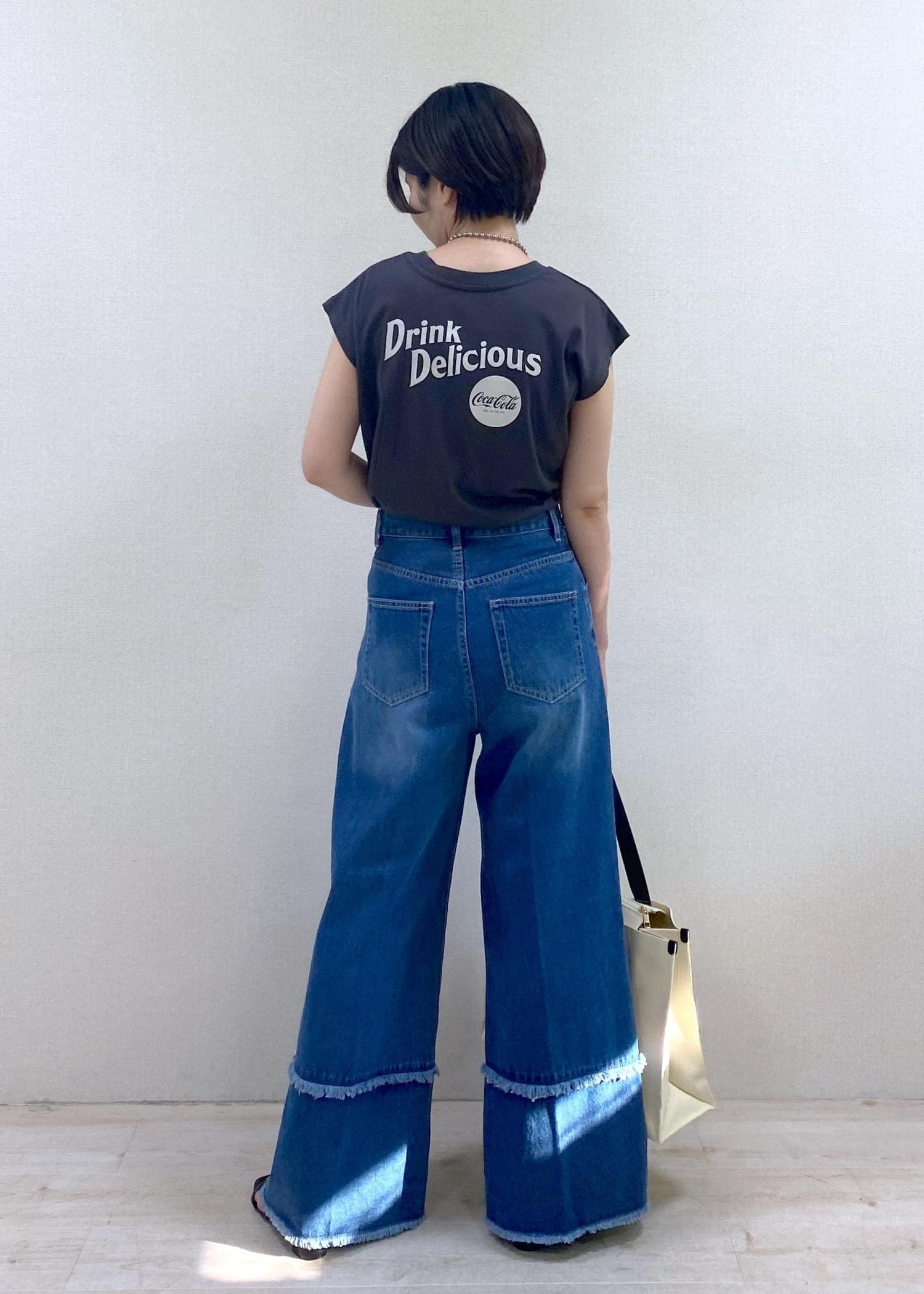 VIS【Coca-Cola】VIS別注ロゴプリントフレンチTシャツチャコール / F¥3,850レビューフレンチスリーブで華奢見えが叶います