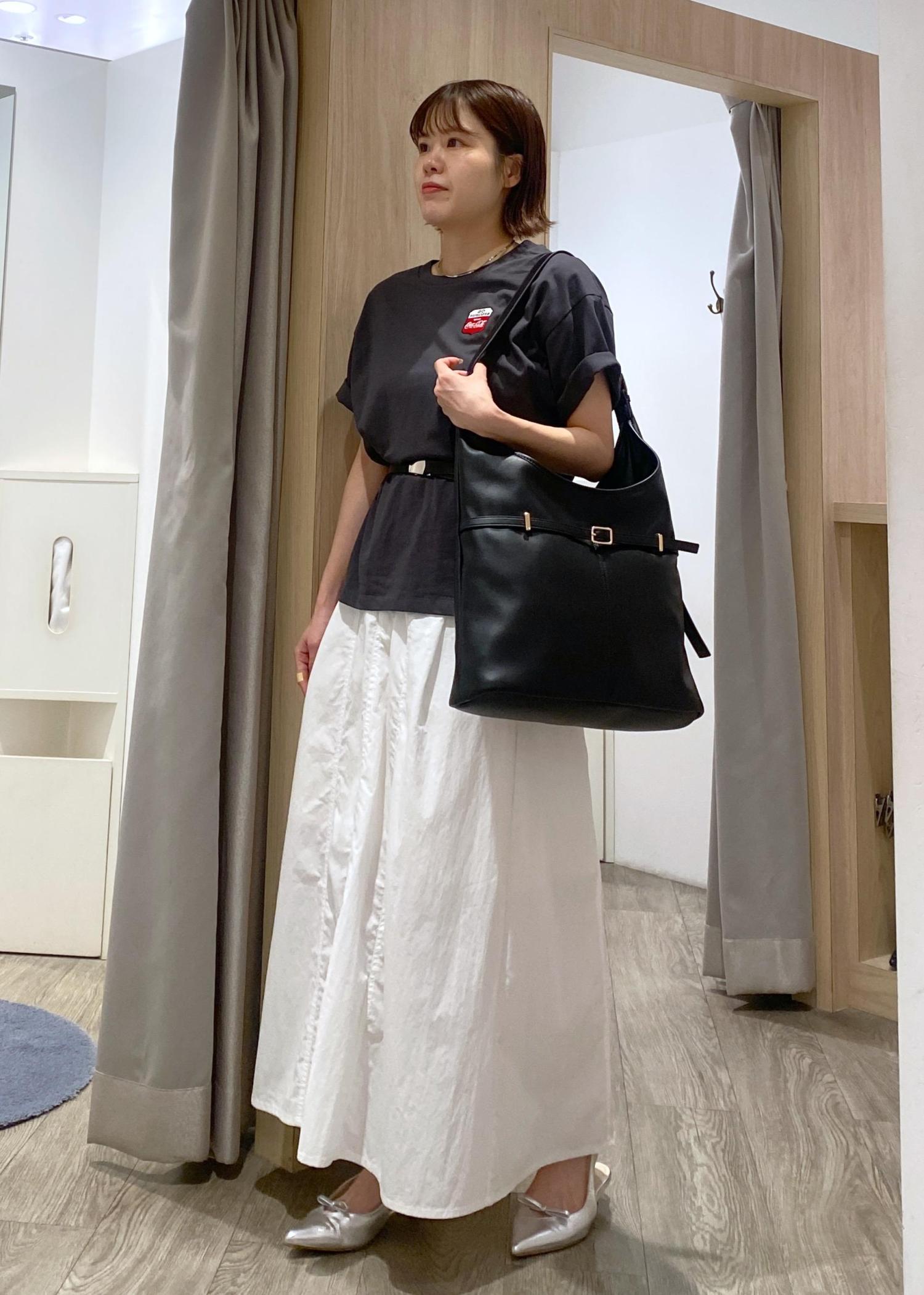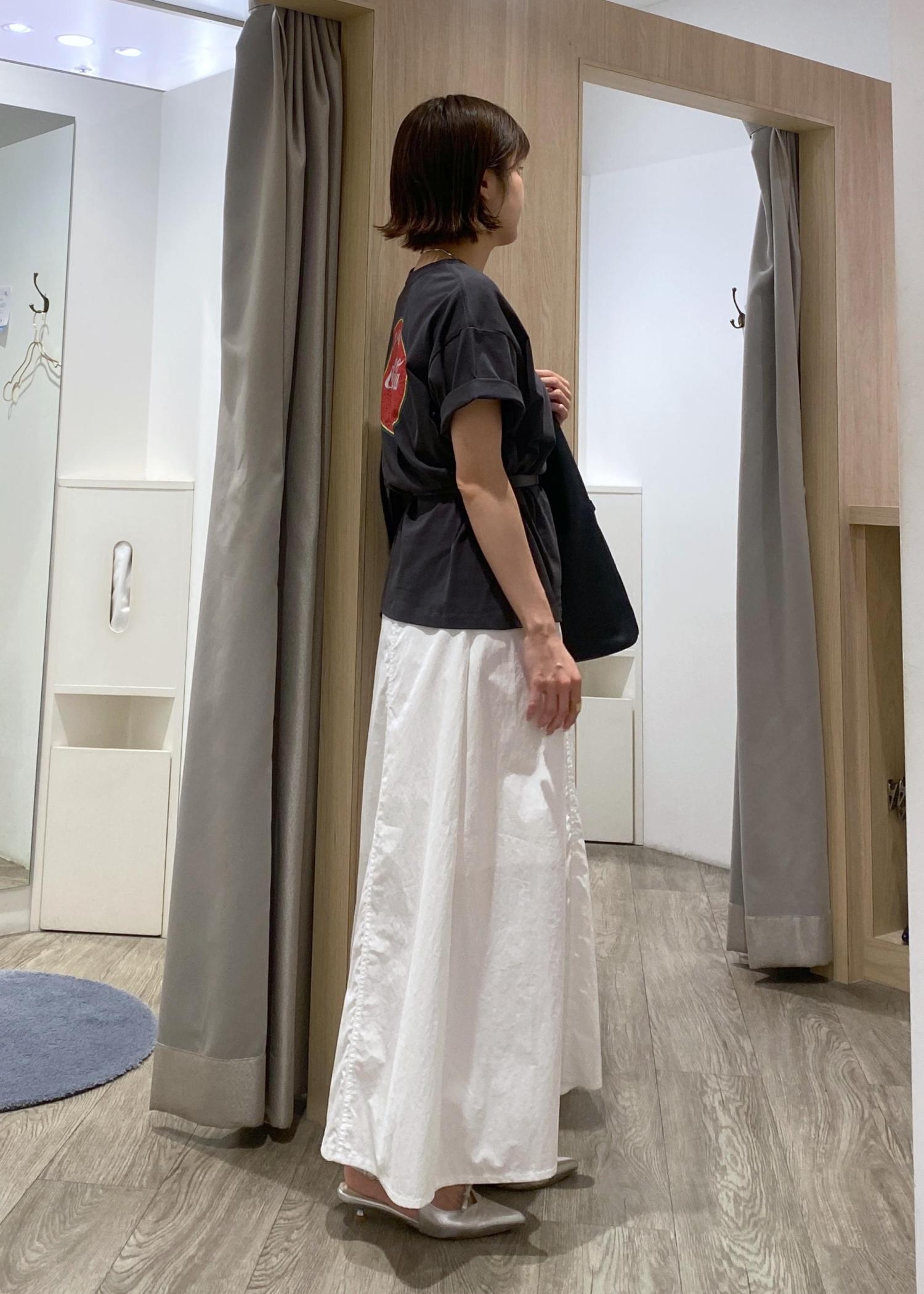 アウトスタイルでベルトマークをさせ、こなれ感のあるTシャツスタイルにしたところもポイントです♪