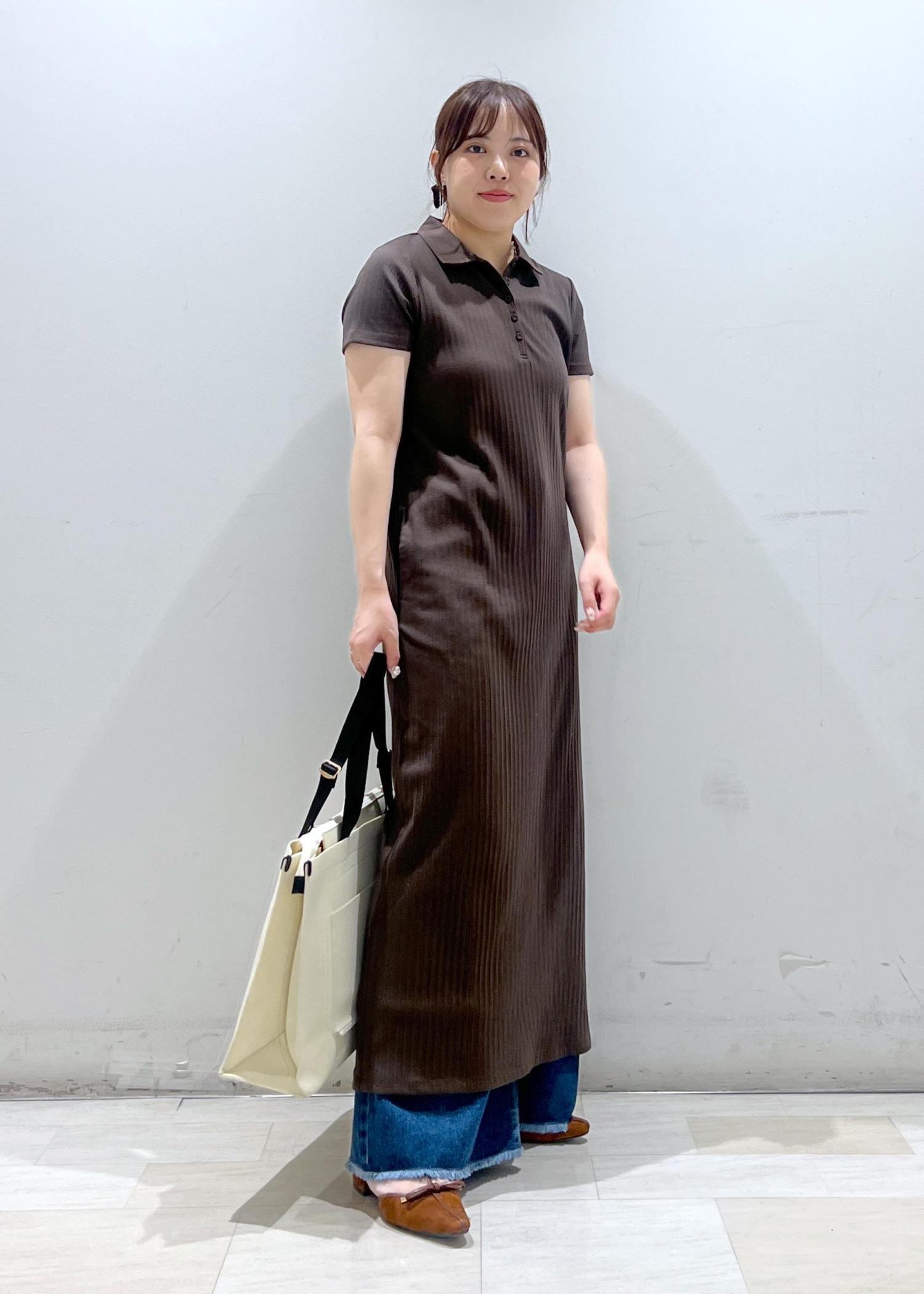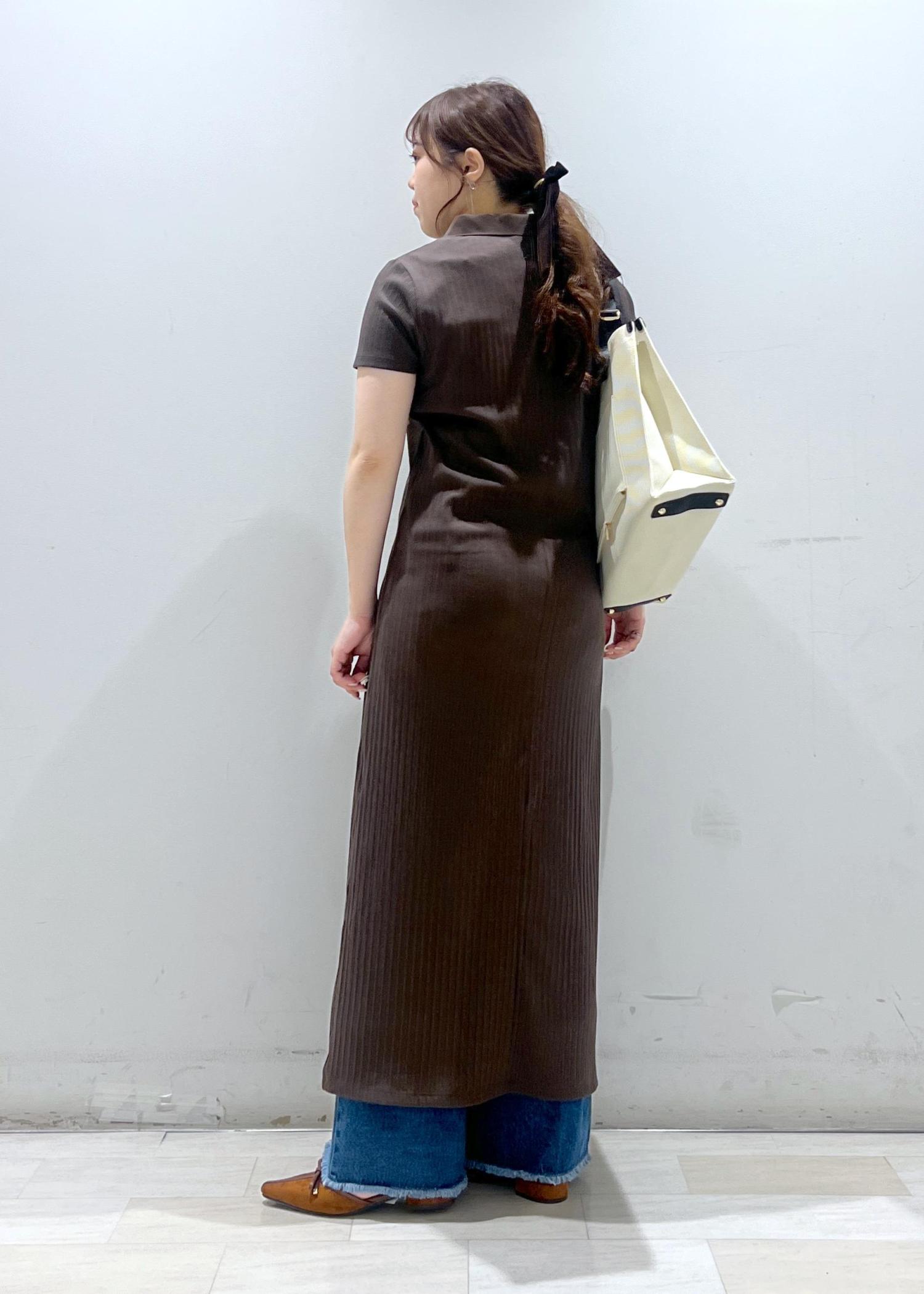 VISポロ衿ランダムリブワンピースダークブラウン / F¥4,612レビューカットソー素材でさらりと着れるポロワンピース。