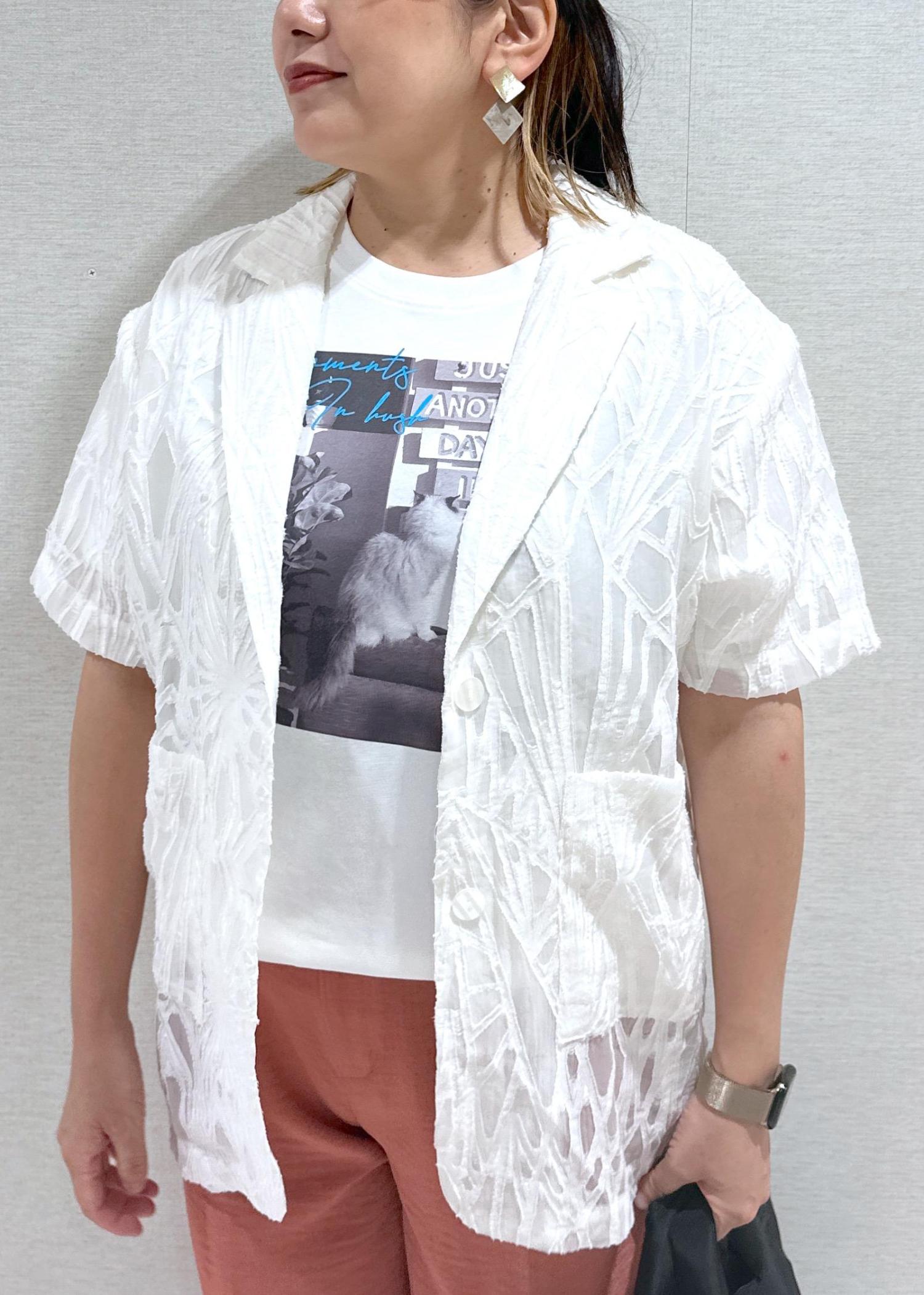 アウトレットVISシアージャガードハーフスリーブサマージャケットキナリ / F¥5,536レビュー程よいシアー感が使いやすいジャケット。