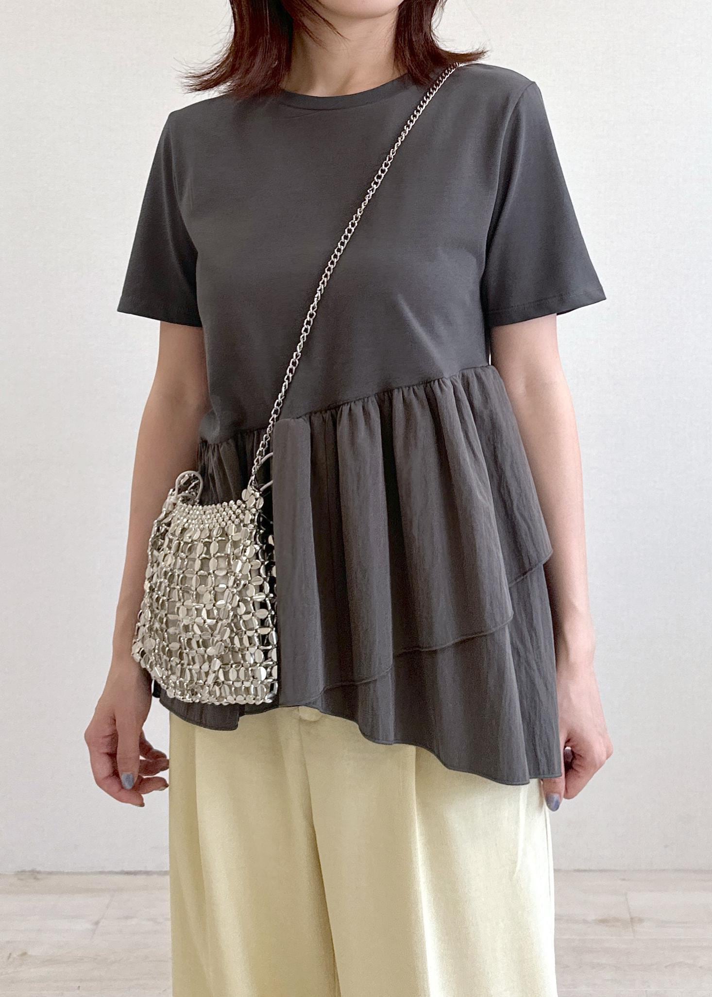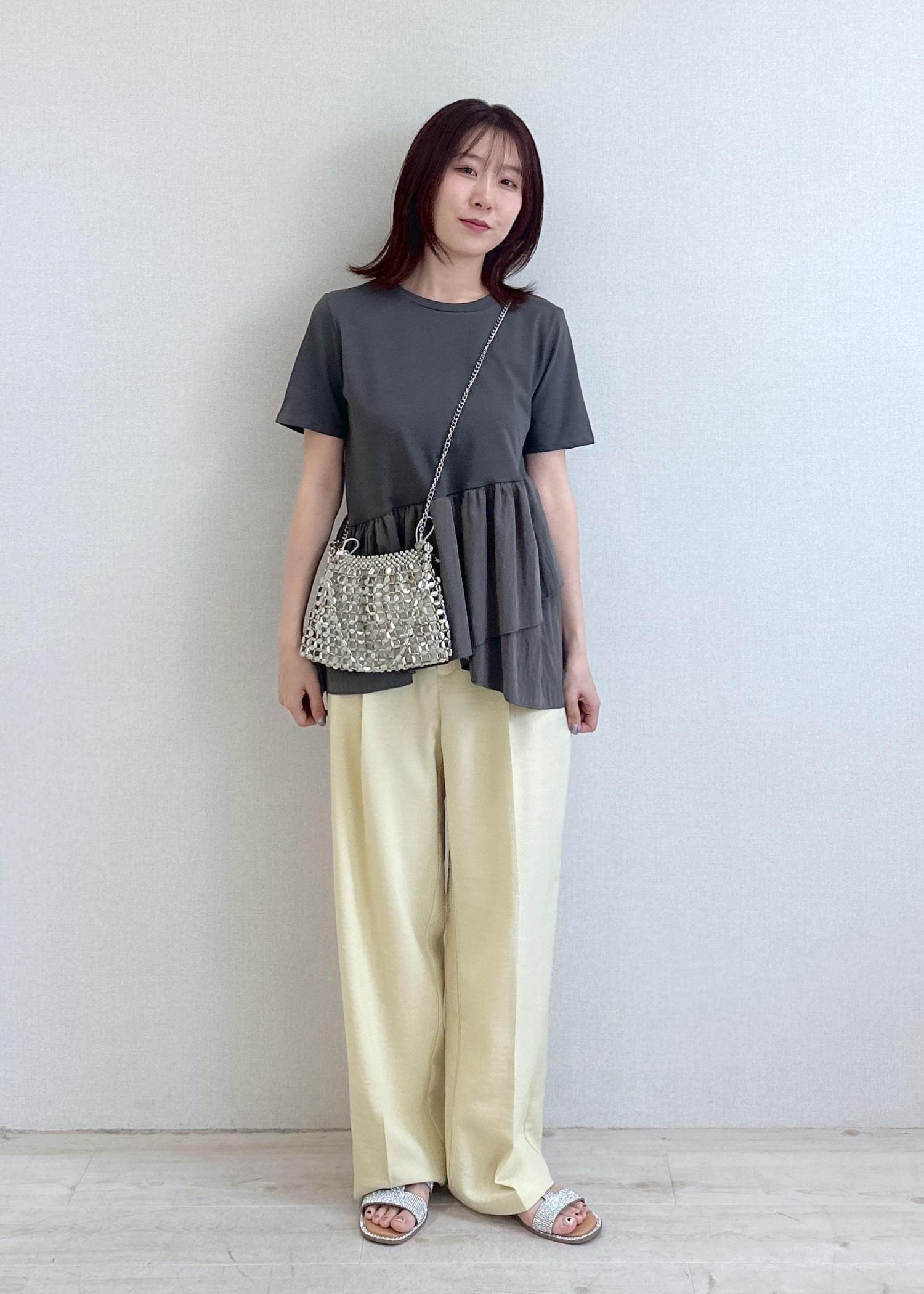 アウトレットVISペプラムドッキングプルオーバーチャコール / F¥2,963レビュー162cmでヒップがしっかり隠れる着丈です。