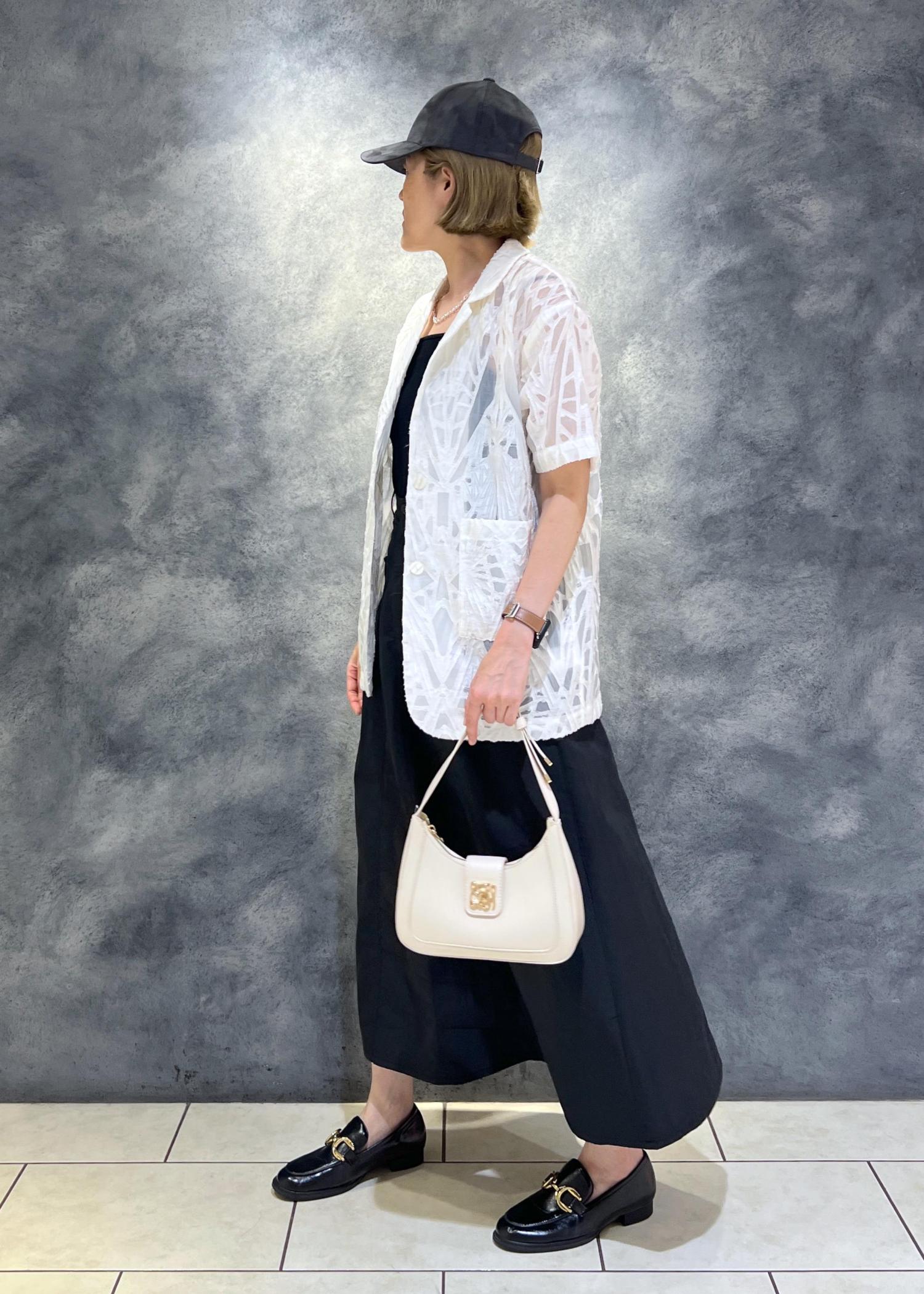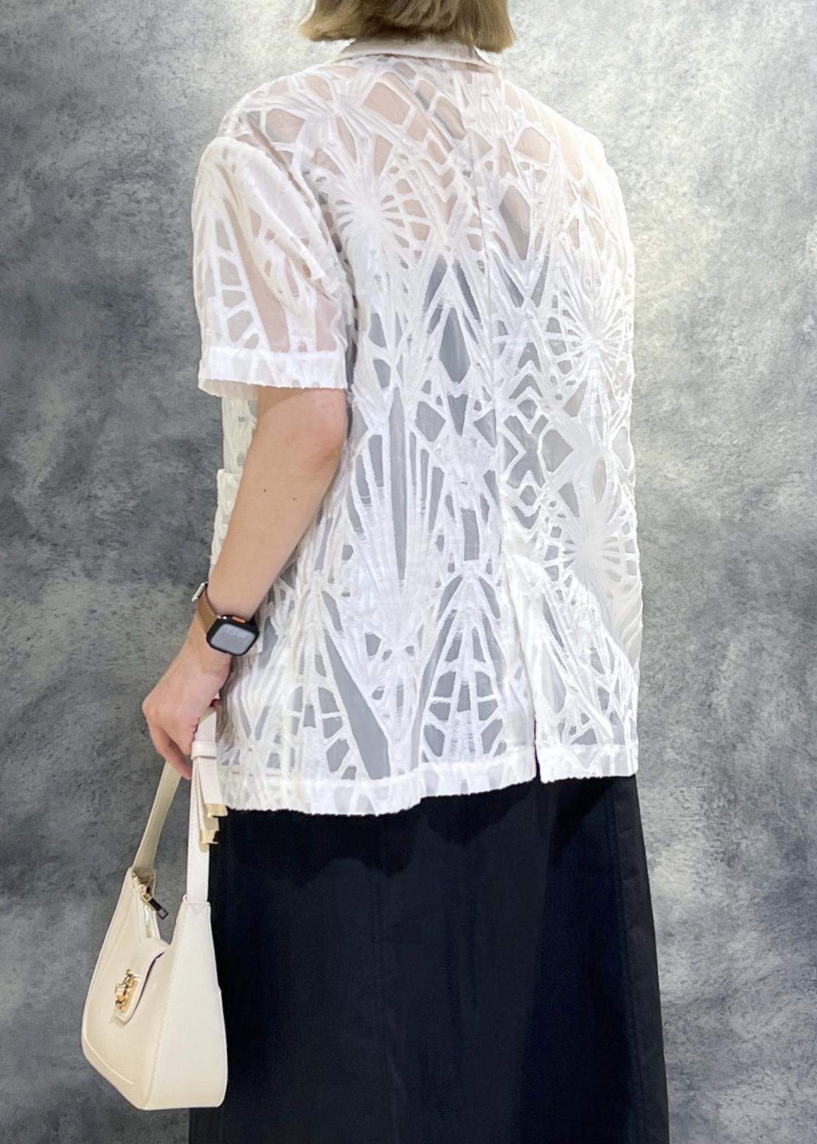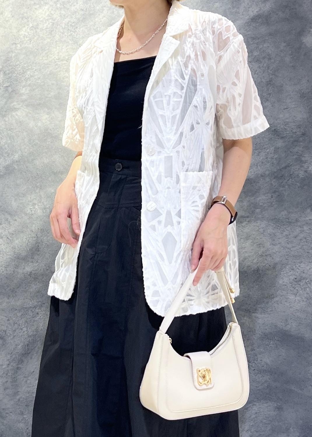 シルエットはしっかりメンズシャツのようなデザインですがシアー感のある素材が大人っぽい。