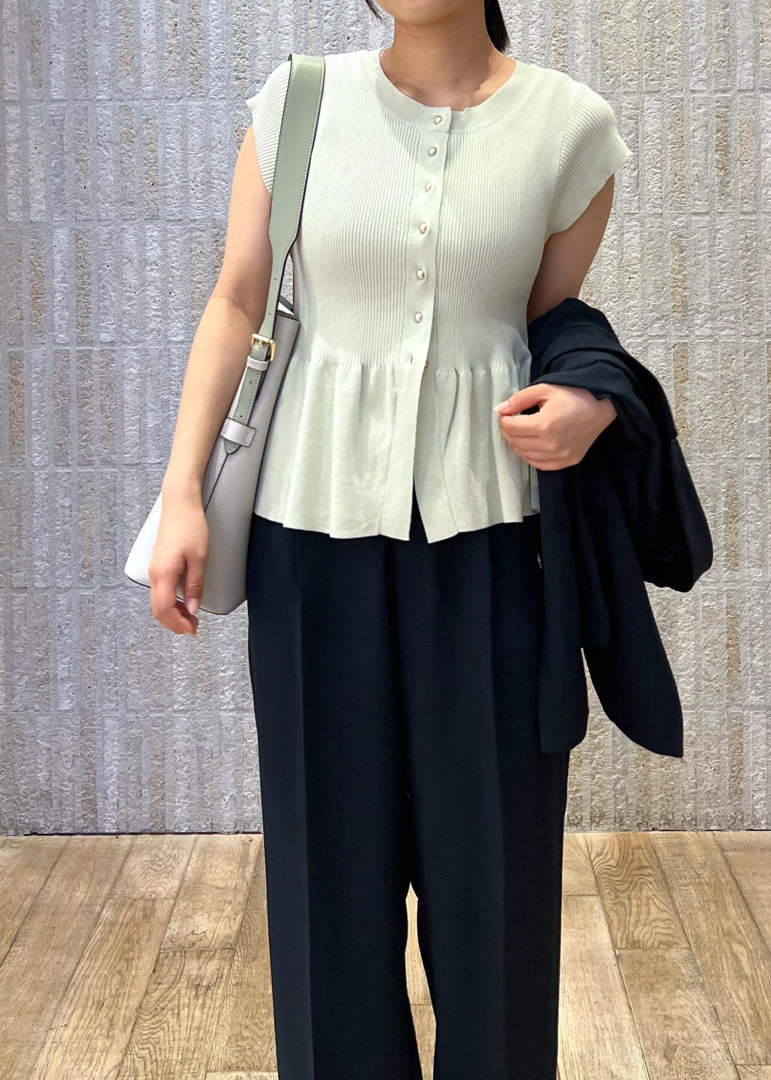 VIS【アンチピリング/洗える】美SMARTショートスリーブペプラムニットライトグリーン / F¥5,489レビュー伸縮性抜群で涼しいトップス。厚みもなく、肩周りは広めに作られているので骨ストさんにも◎ジャケットの下に着るのもオススメです。