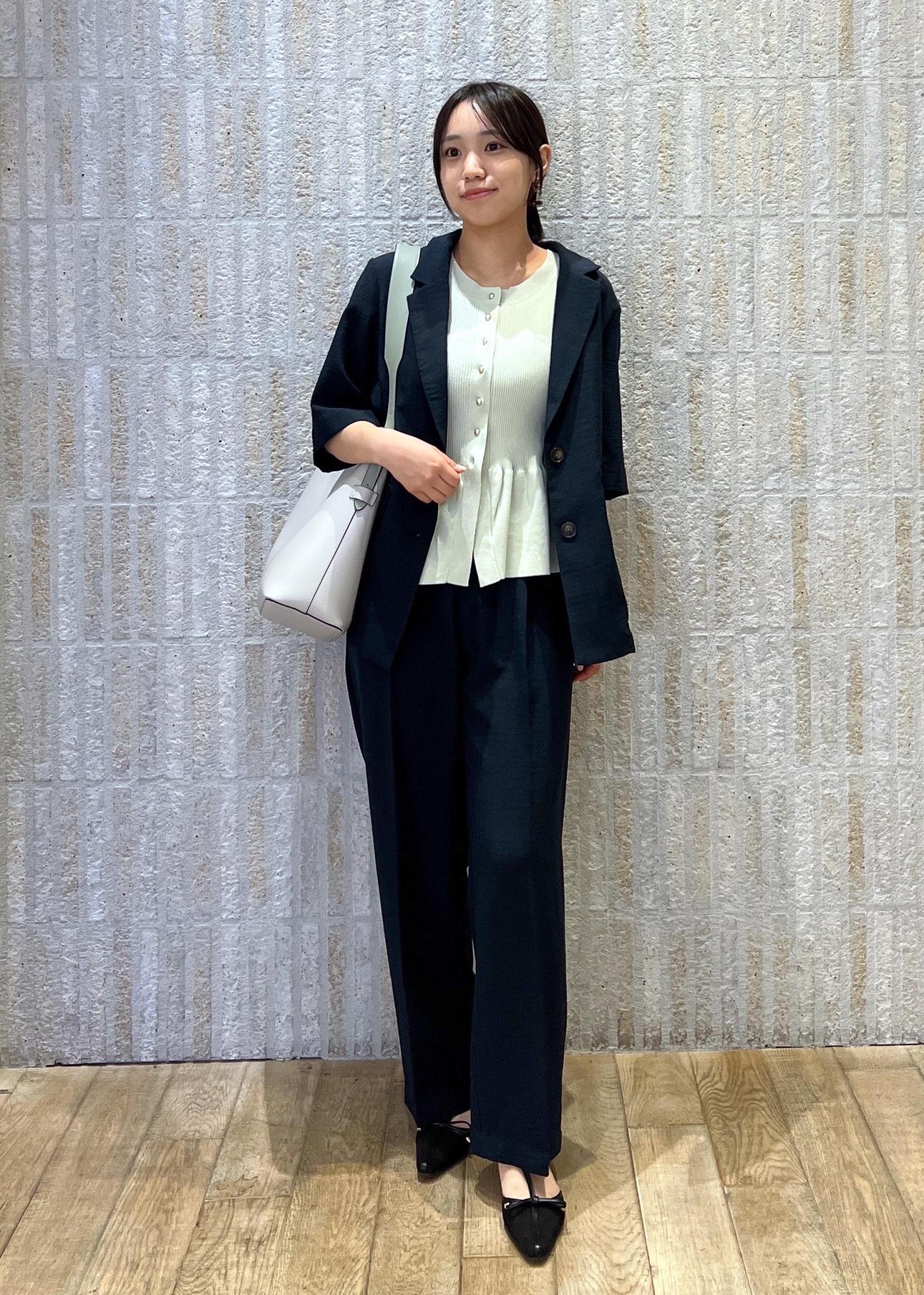 VIS【美easy】ワンタックワイドスラックスパンツ/洗えるネイビー / S¥5,489レビュー毎年人気の美easyシリーズ。158cm普通体型でSサイズを着用しています。薄いカラーはインナーに注意が必要ですがその分涼しい肌あたりです!ワイドすぎないストレートのシルエットで着心地もいいので1枚あると便利です。ウエストはボタンで調整可能なので丈感で選んでいただくのがおすすめです◎