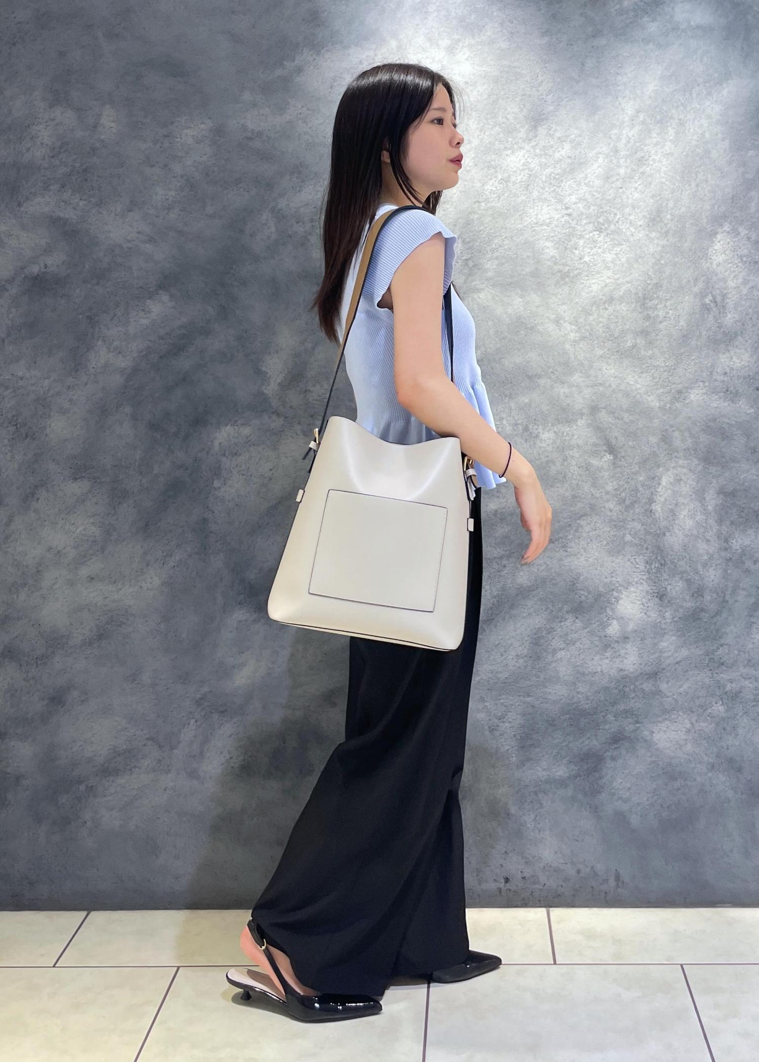 程よく首が空いているのでネックレスなど合わせて上品に合わせるのがおすすめ◎