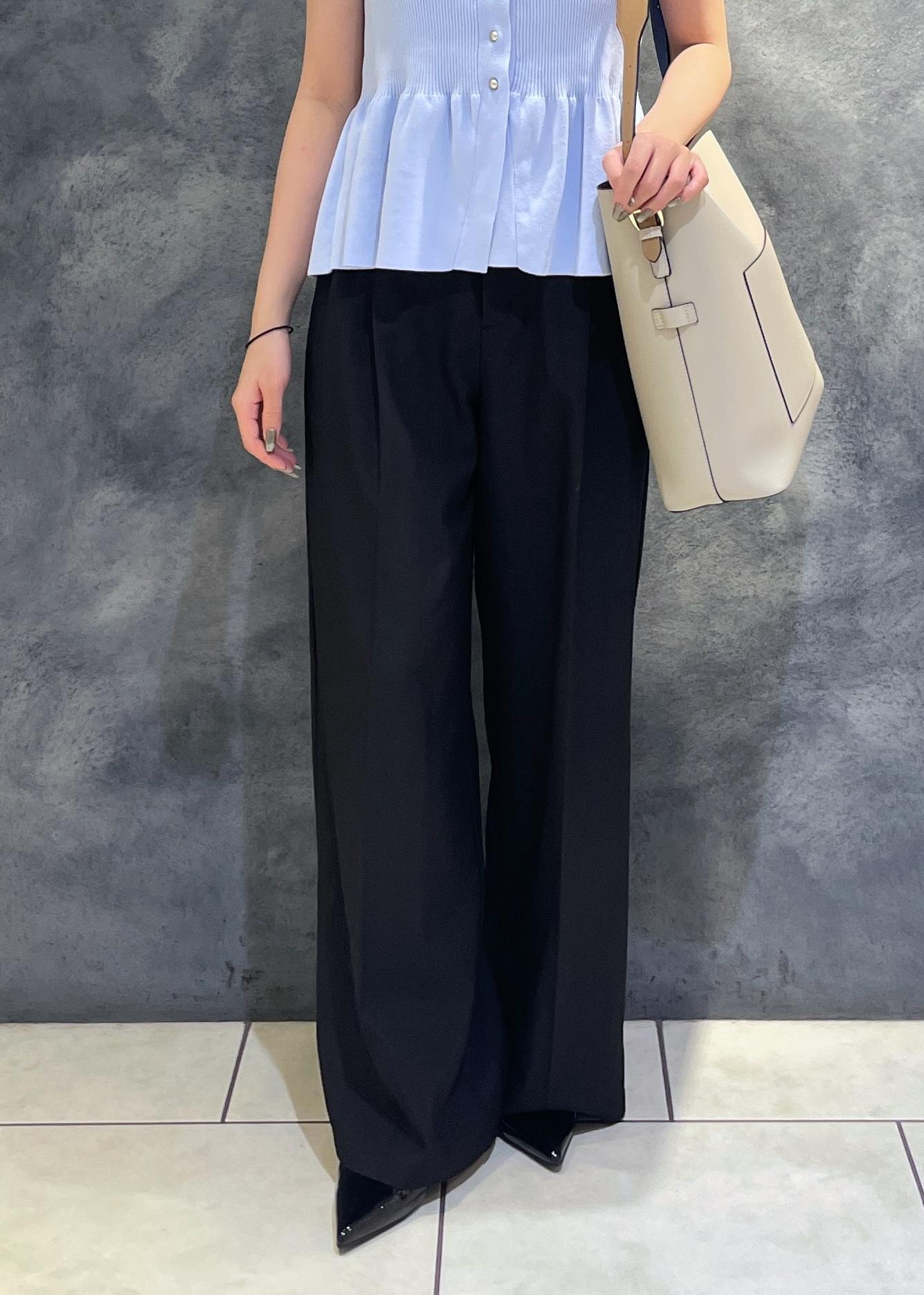 VIS【新色追加】【防シワ/接触冷感】ベルトディテールタックワイドスラックスパンツブラック / M¥6,589レビュー160cmでMサイズ着用。