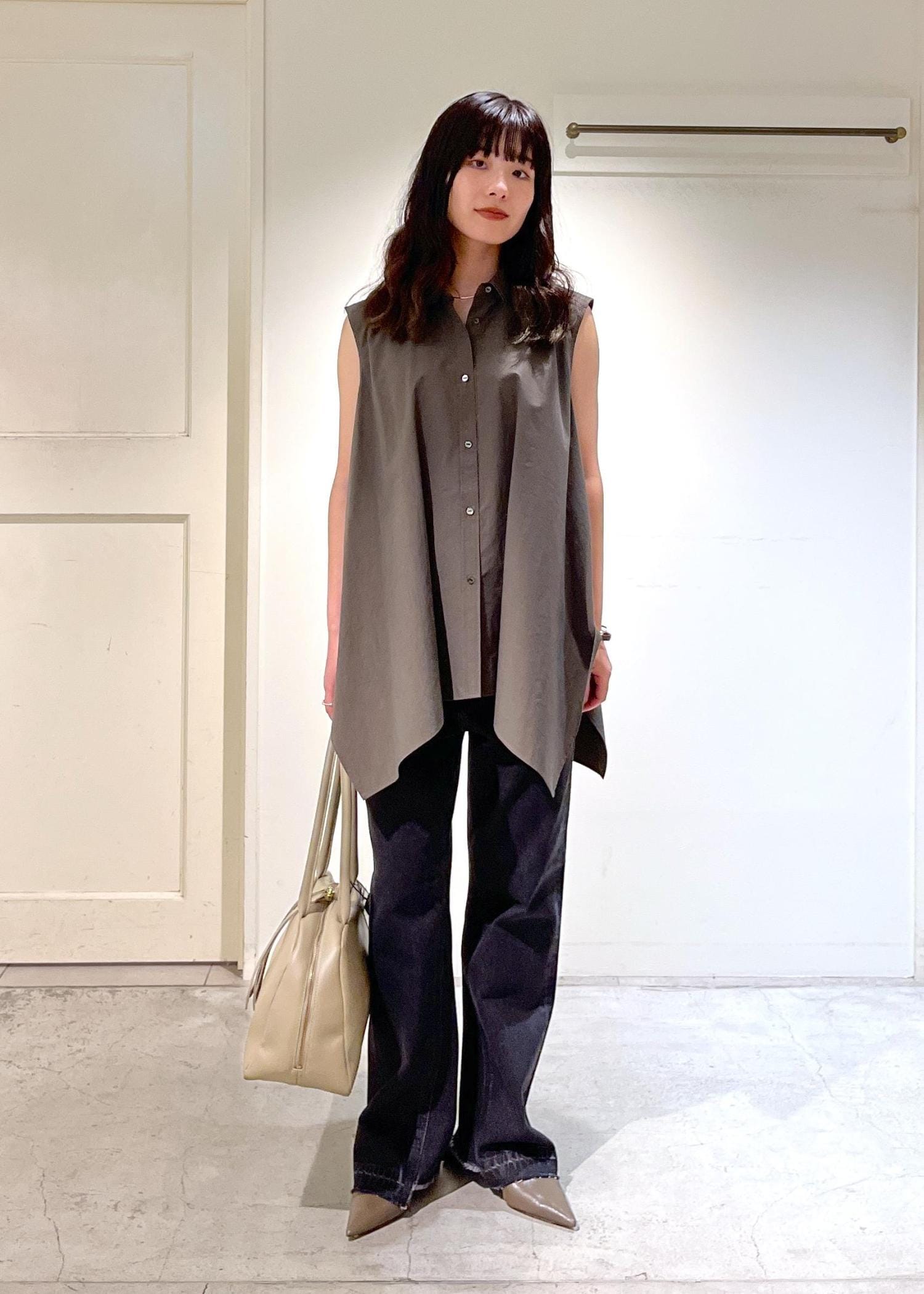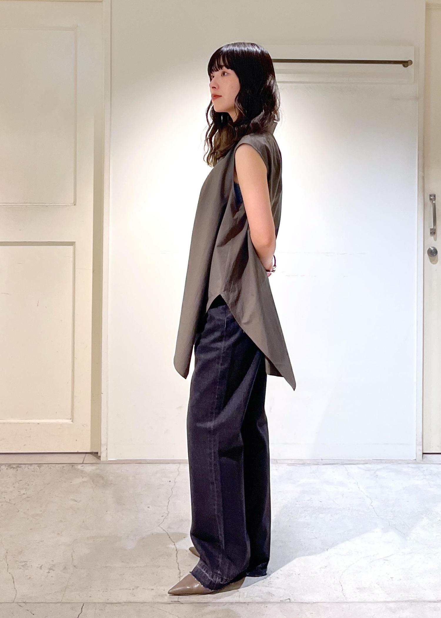 柔らかいデニム。すっきりとしたシルエットです。裾の段差のあるカットがポイント◎ -