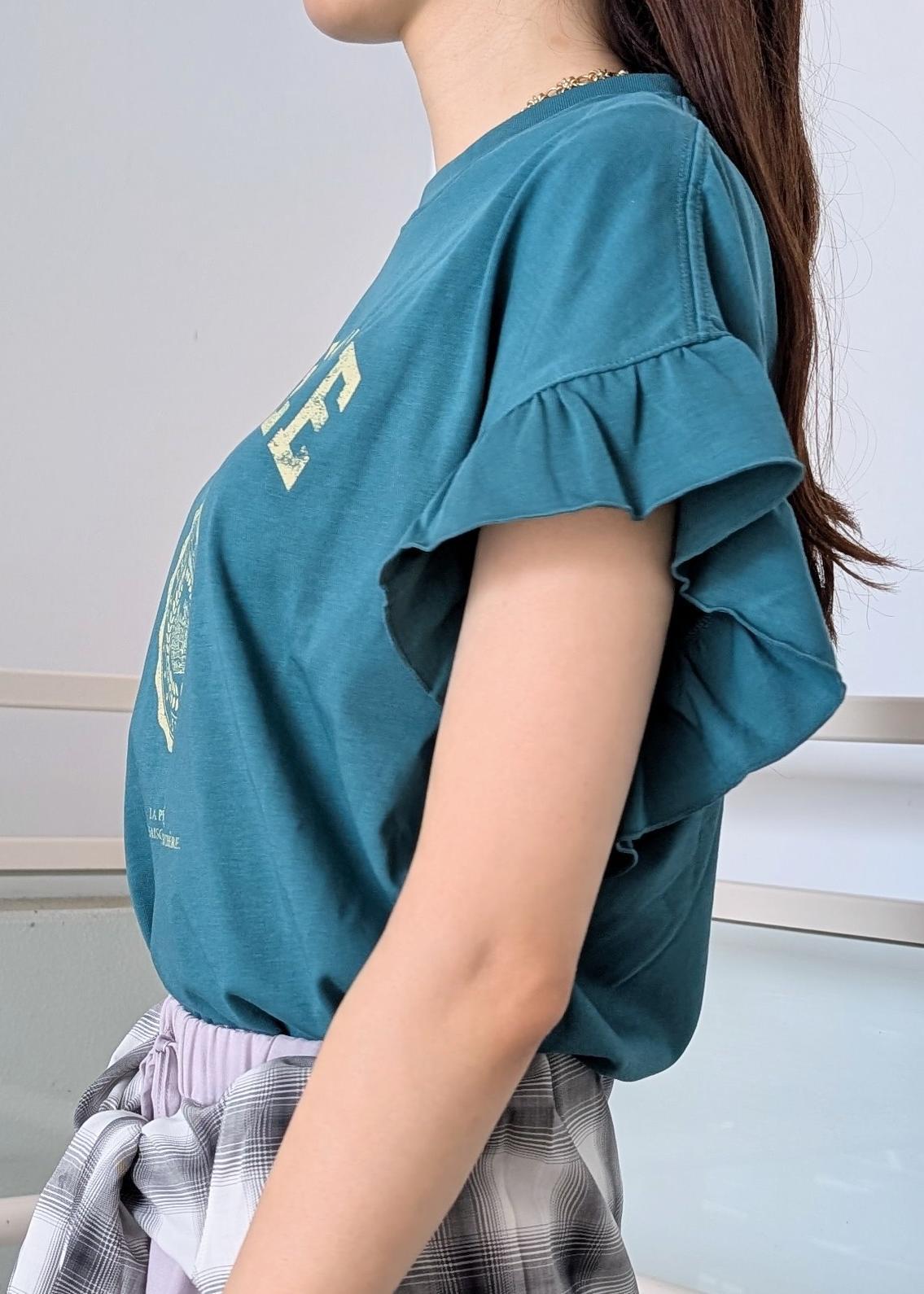 ROPÉ PICNIC袖フリルカレッジロゴTシャツグリーン / 38¥4,499レビュー袖のフリルが二の腕をカバーしてくれます。