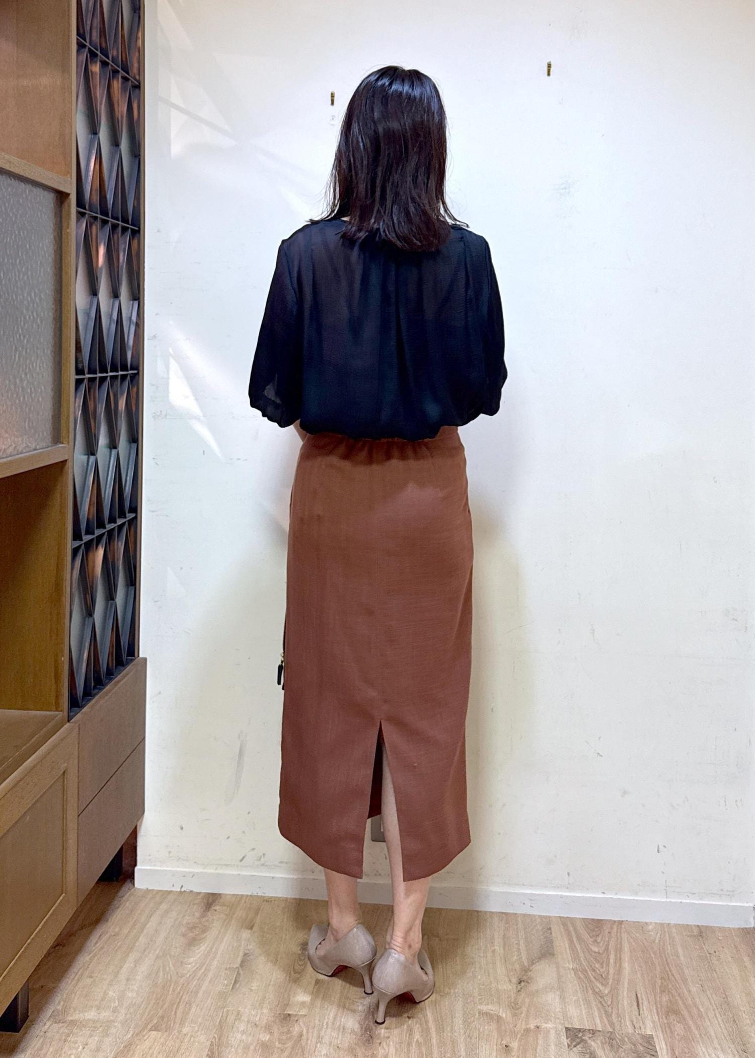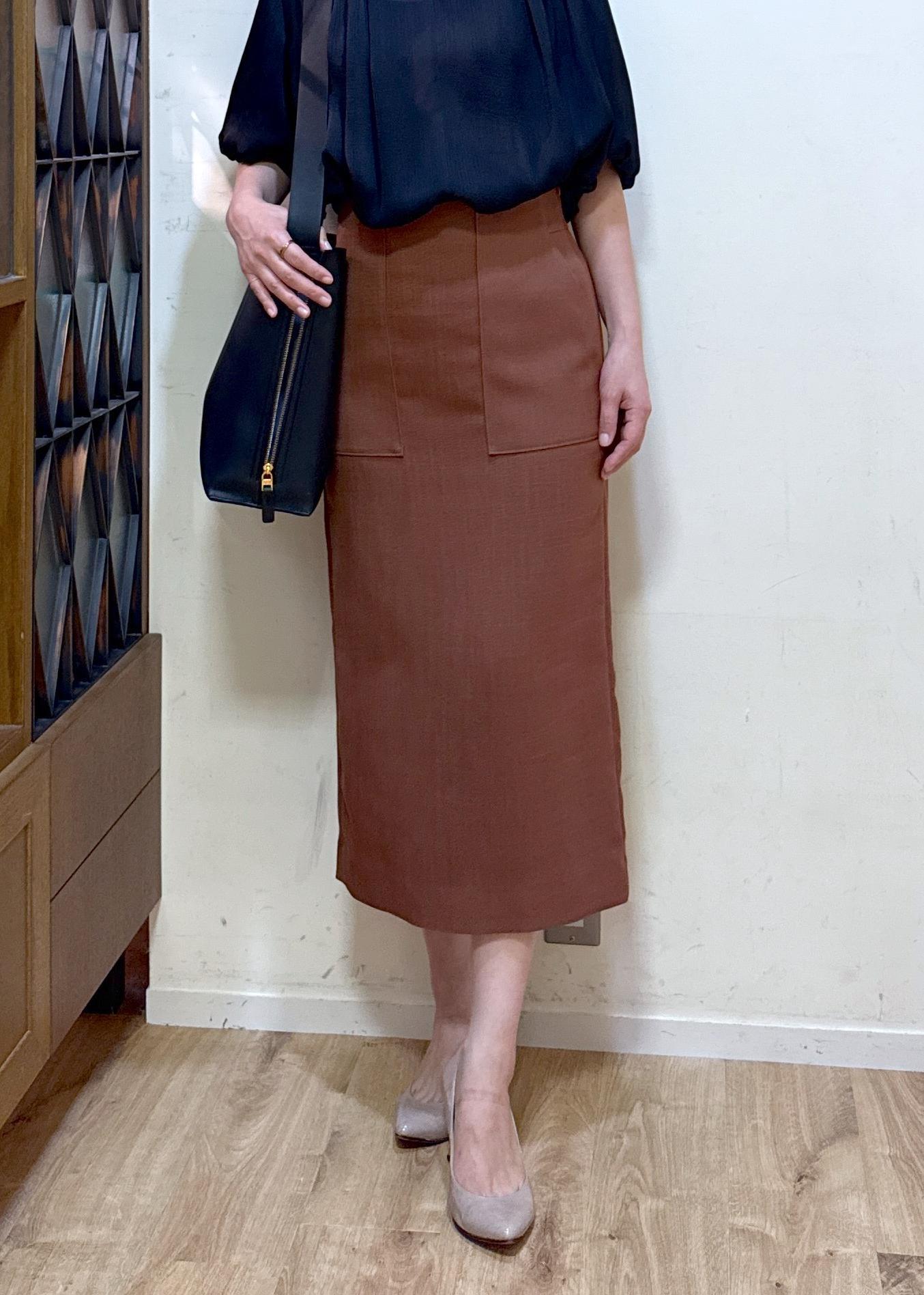 ROPÉリネンライク ポケット付きタイトスカート/イージーケアブラウン / 36¥20,900レビュー163センチ 36サイズ着用