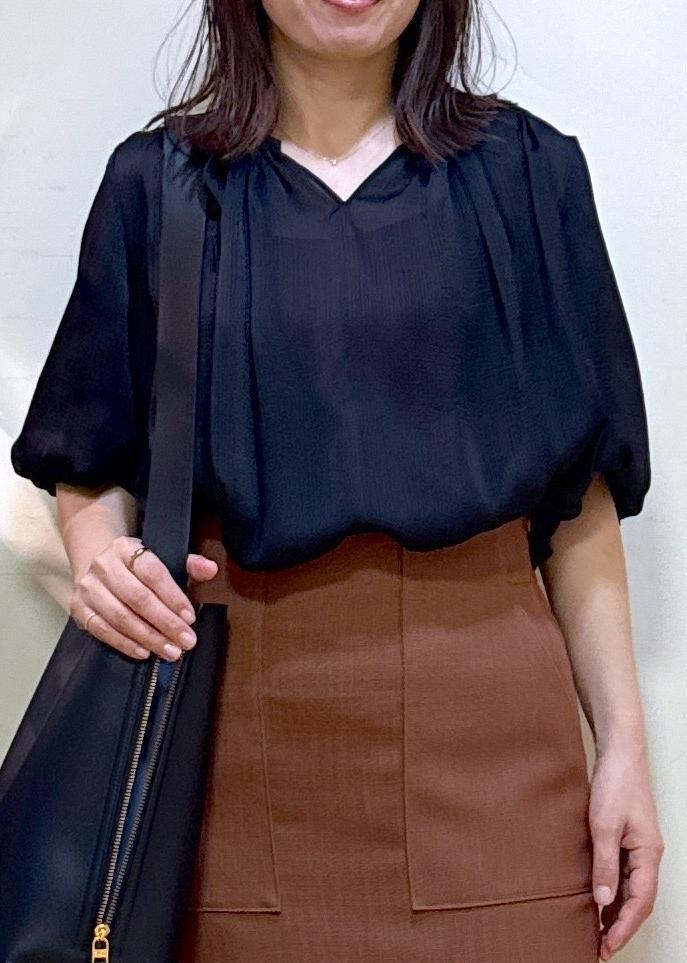 アウトレットROPÉ楊柳スキッパーブラウス/イージーケアブラック / F¥10,450レビュー163センチ Fサイズ着用