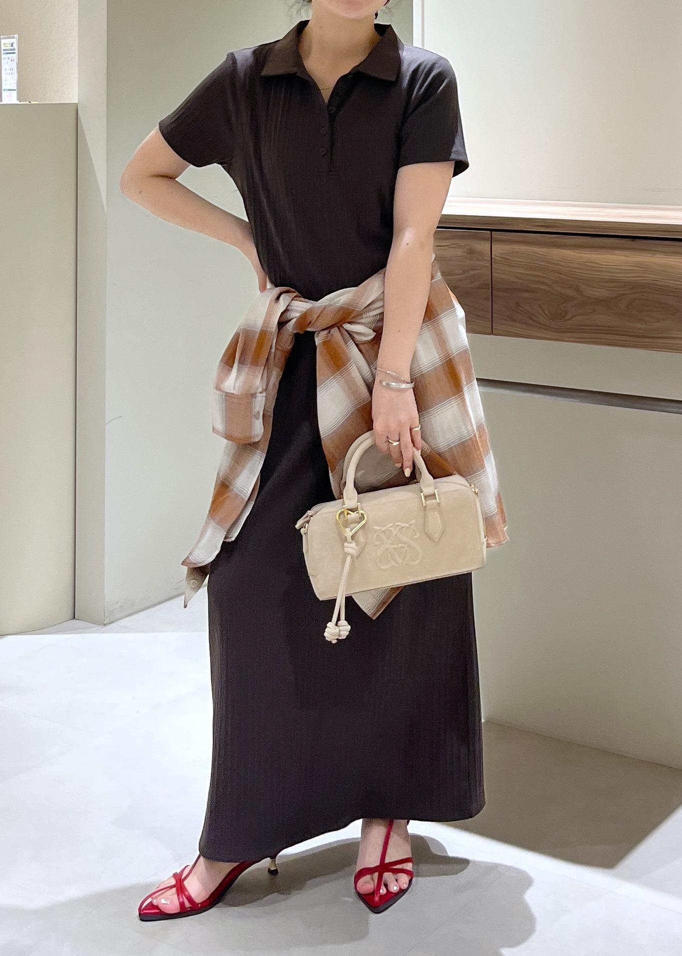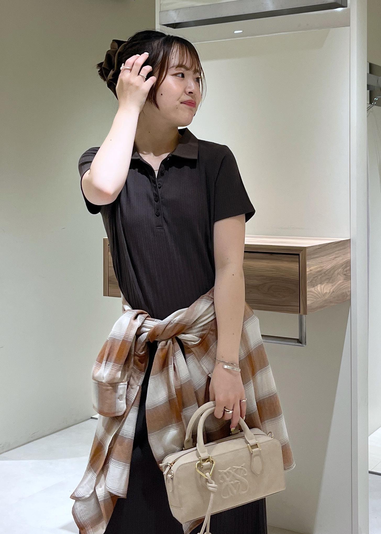 VISポロ衿ランダムリブワンピースダークブラウン / F¥4,612レビュー153センチフリーサイズ着用。