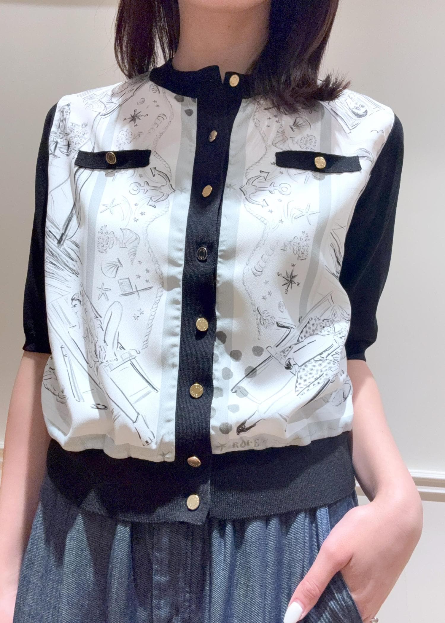 ROPÉ【洗える】【YUKO SAEKI for ROPE'・コラボ】スカーフ柄プリント カーディガンブラウスブラック / F¥27,500レビューFサイズです。着丈が短くコンパクトなシルエットになっていますが、身幅には程よいゆとりがあるので楽にサラッと着やすいです。