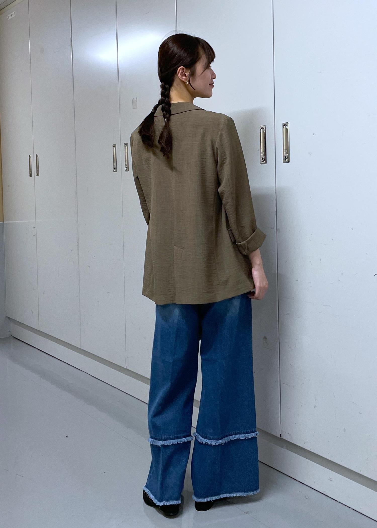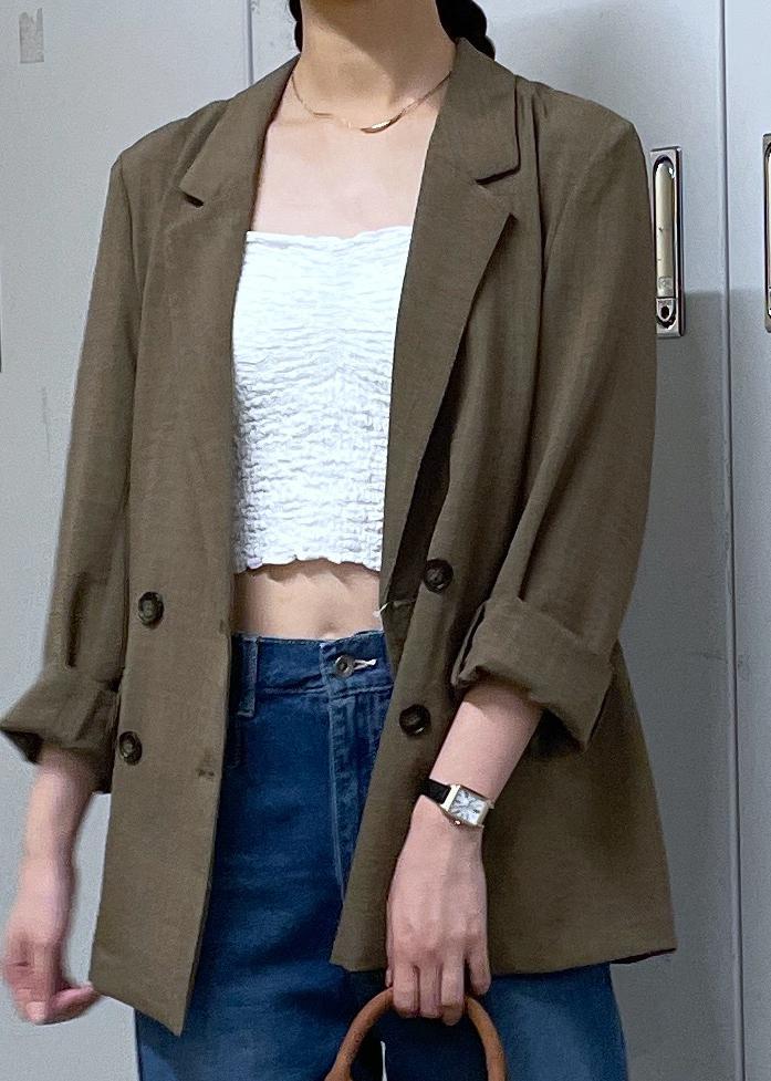 VIS【美easy】リラックスジャケット/セットアップ対応・洗えるカーキ系 / S¥7,909レビュー大きめの作りなので、167cmの身長でSサイズでちょうど良かったです。裏地がついていない薄手なので袖を折ってきていただくとスッキリと見えます。