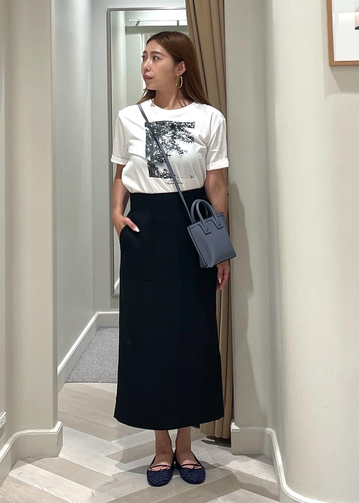 ROPÉプリントTシャツ/イージーケアホワイト系 / F¥8,800レビュー着丈は160cmが着用で、おへそから6〜7cm辺り。