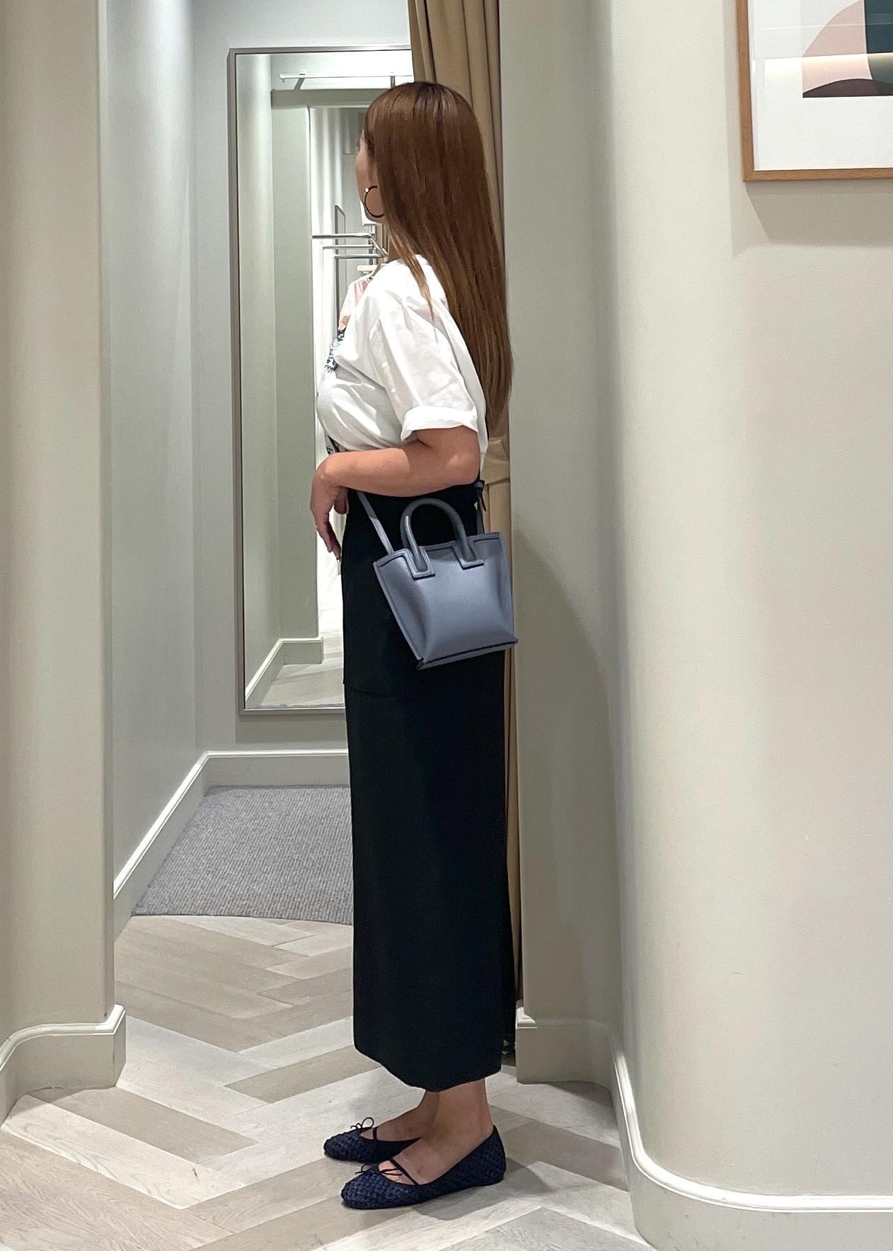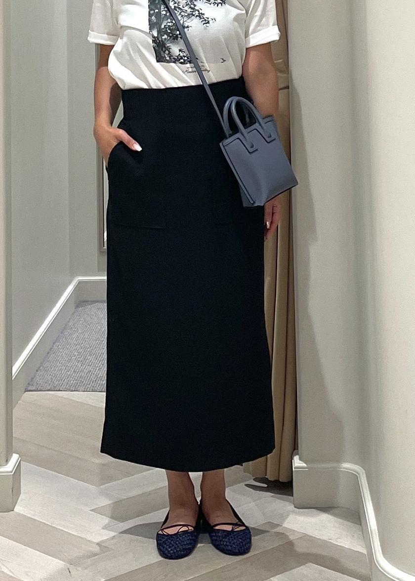 ポケ付きタイトスカートは厚みを感じない生地感で、