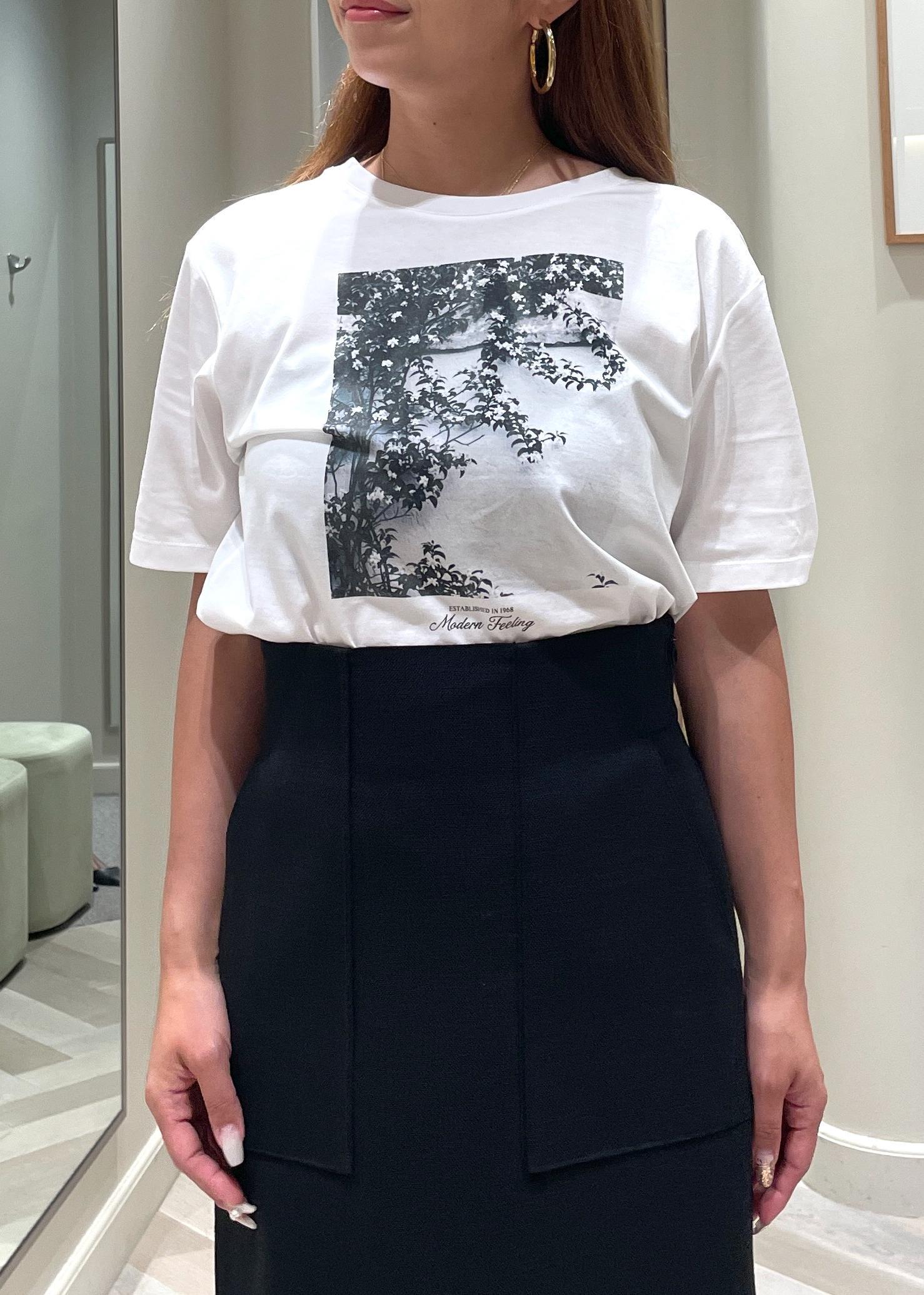 TEEシャツの中心部に、描かれたプリントは、モノトーンなので、色々なパンツやスカートと合わせやすい◎
