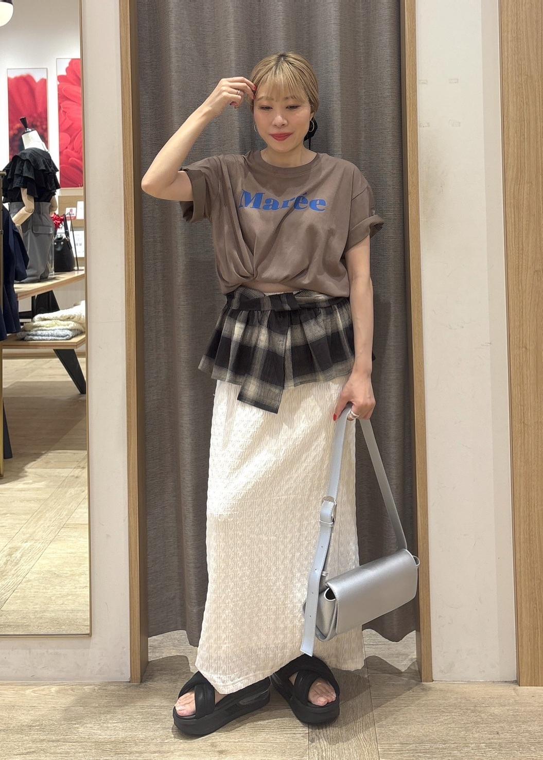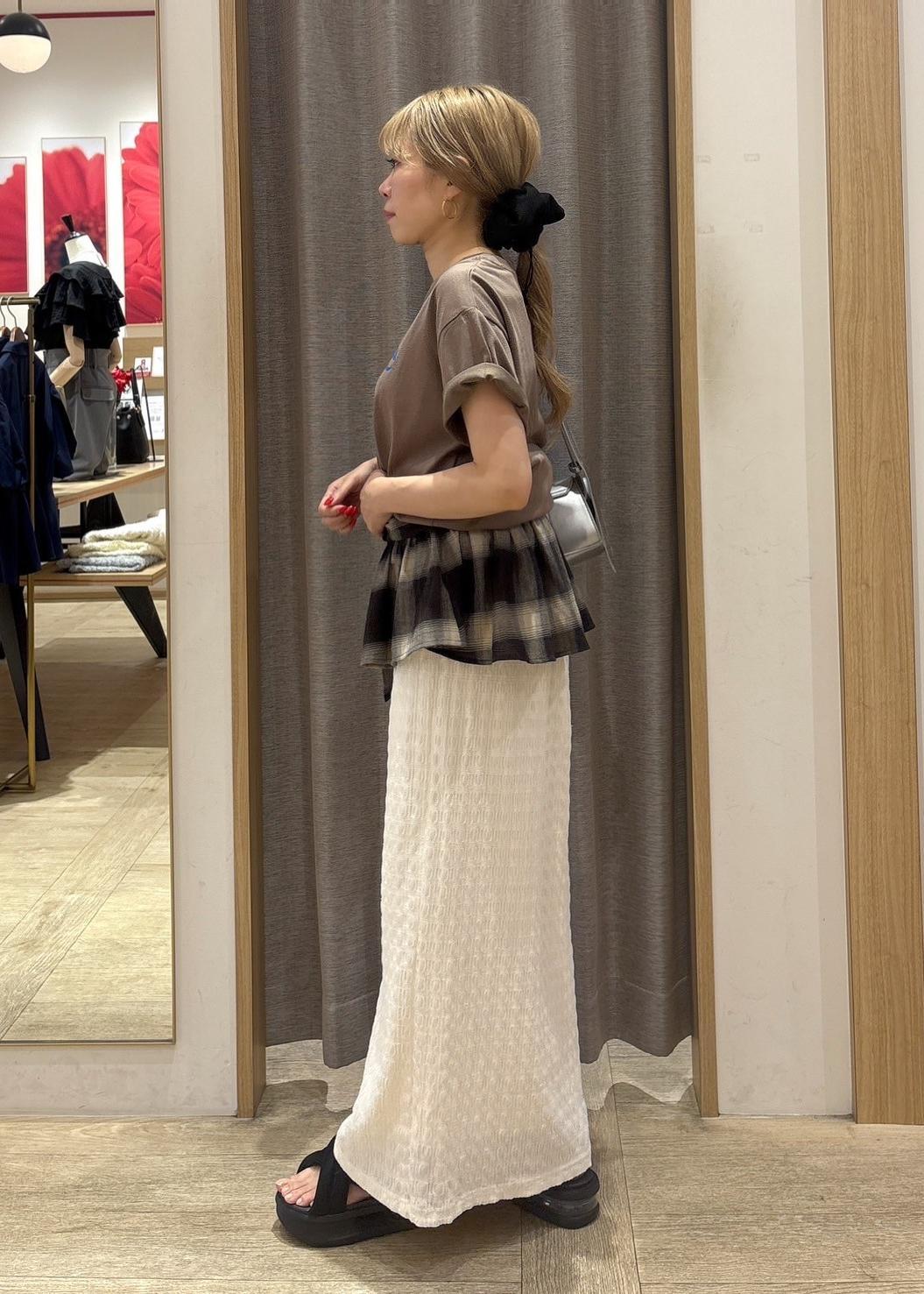 アウトレットVIS【新色追加】【接触冷感】膨れジャガードナロースカートオフホワイト / F¥3,293レビュー身長154cmでFサイズ着用。