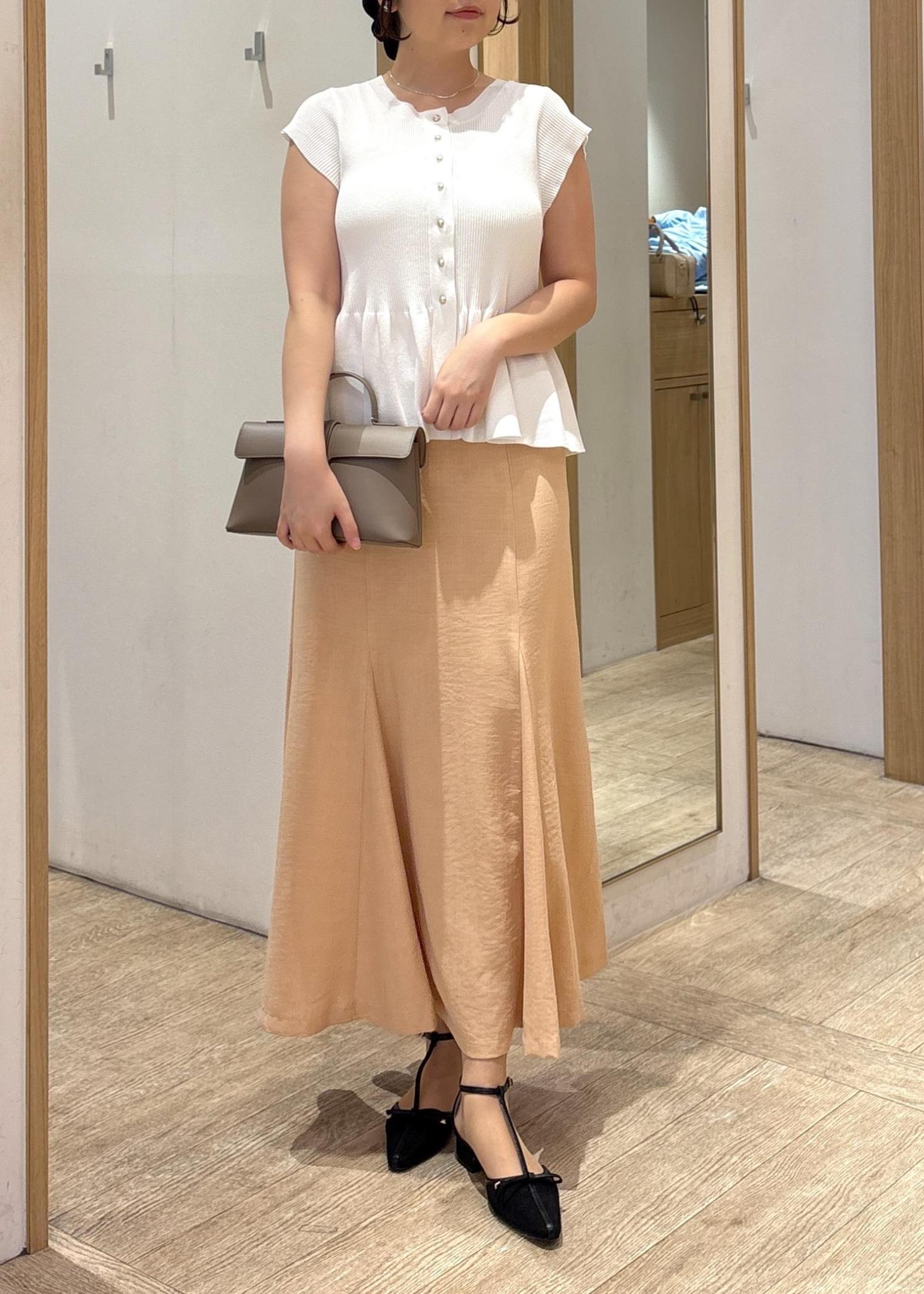 動くたびに美しく揺れ、エレガントな印象に。ハイウエストなのでスタイルアップ効果も◎