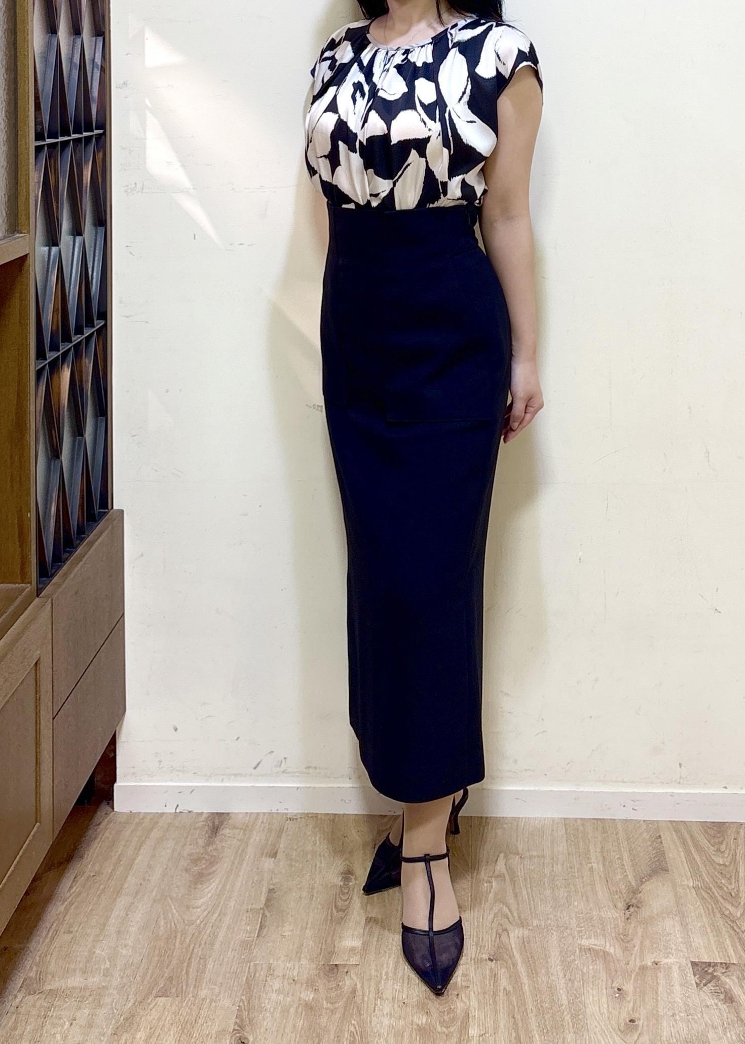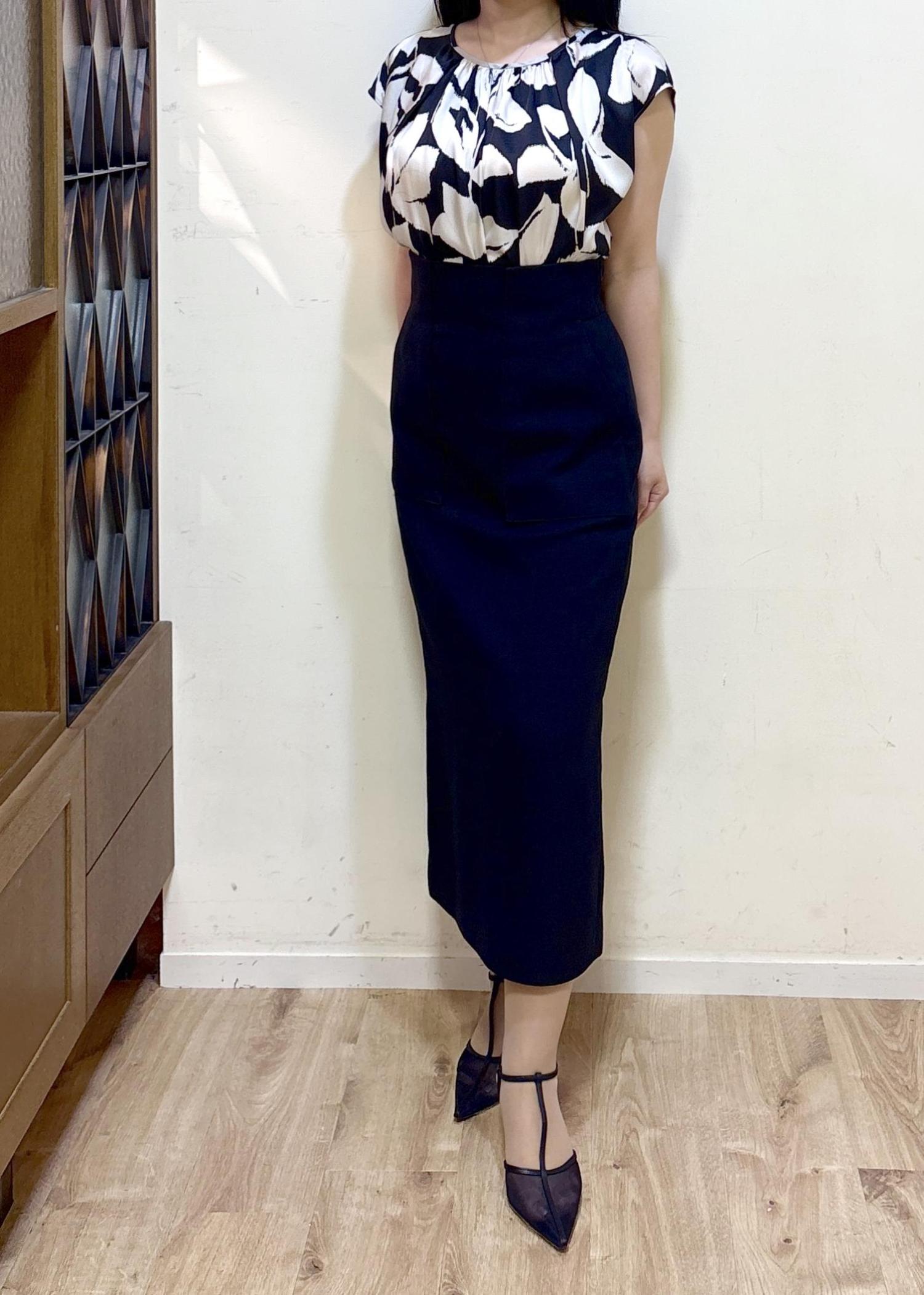 ROPÉリネンライク ポケット付きタイトスカート/イージーケアブラック / 36¥20,900レビュー身長152cm 36サイズ着用