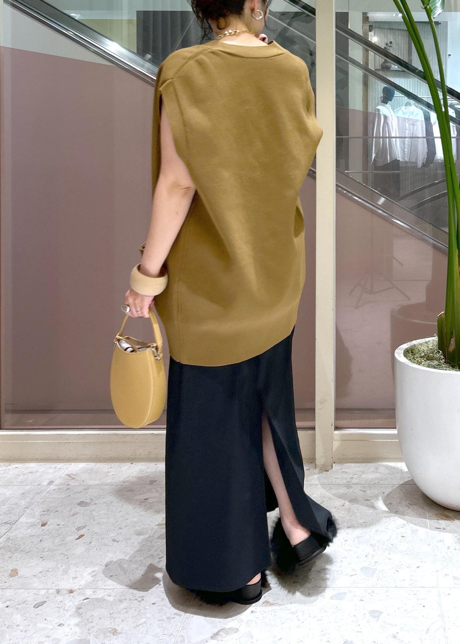 ドロップショルダーになっており、二の腕をカバーしてくれるのも嬉しいポイント。前を閉じて主役としてコーディネートしても、羽織で使っても活躍するアイテムでオススメです! -