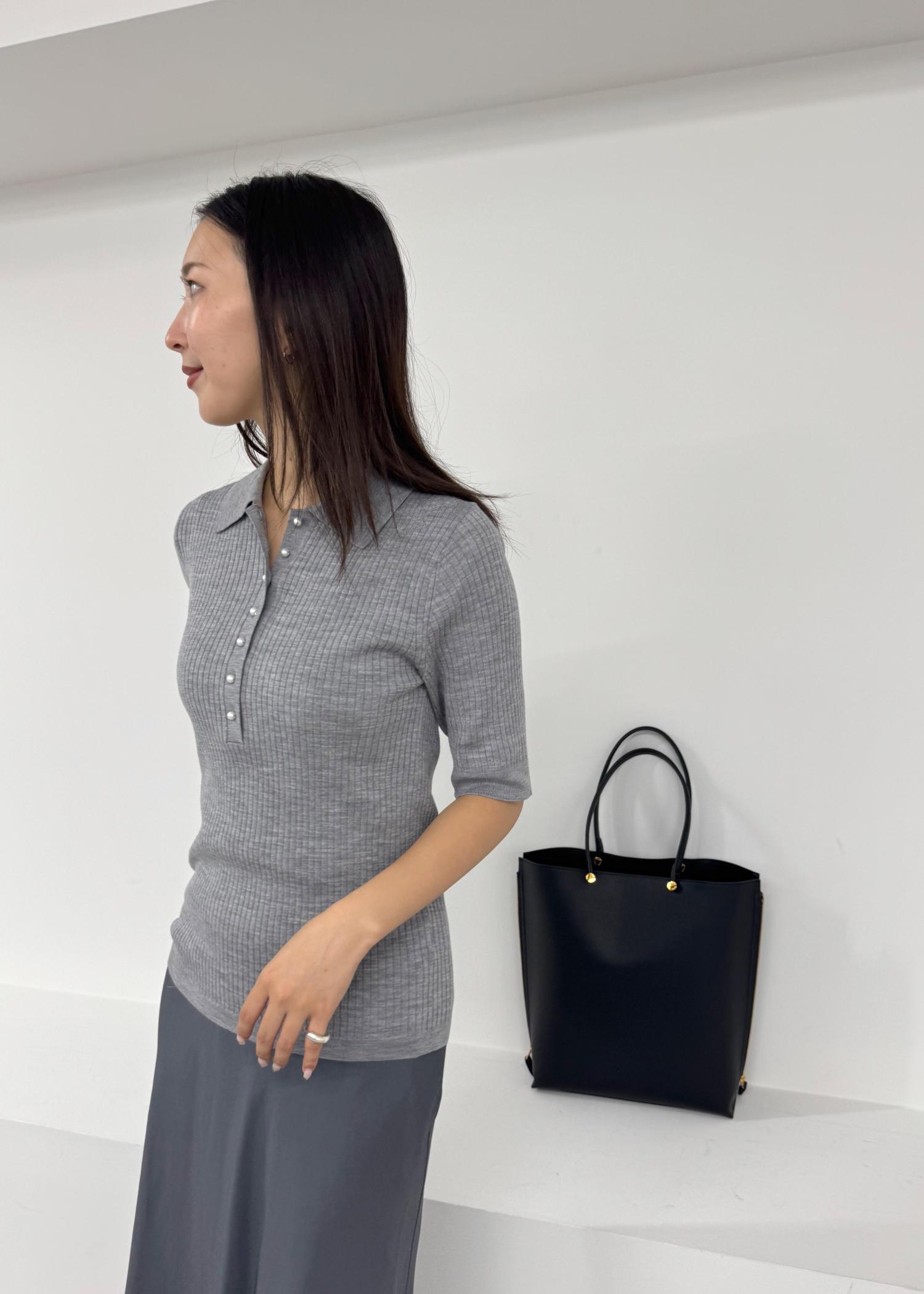 ROPÉパール釦ポロニット/イージーケアグレー / F¥19,800レビュー163cmでFサイズ着用。