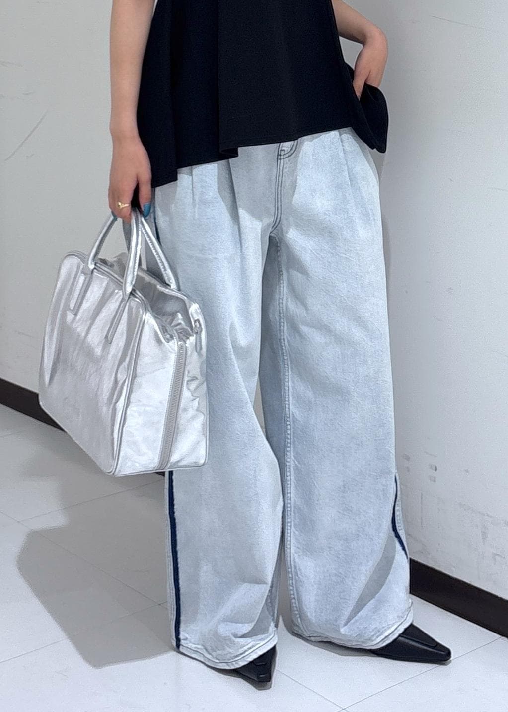 どんなコーデにも合わせやすく、特にワイドパンツに合わせると先が見えてとてもお洒落に着こなせます。 -
