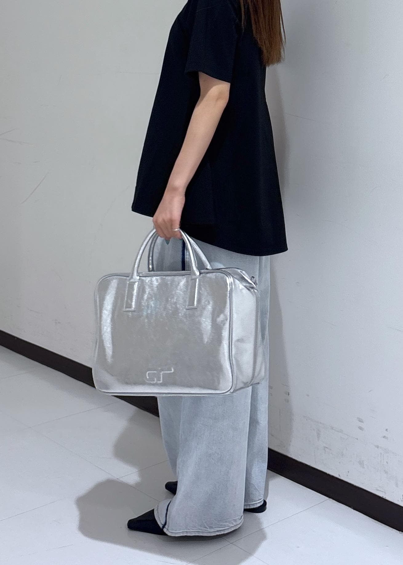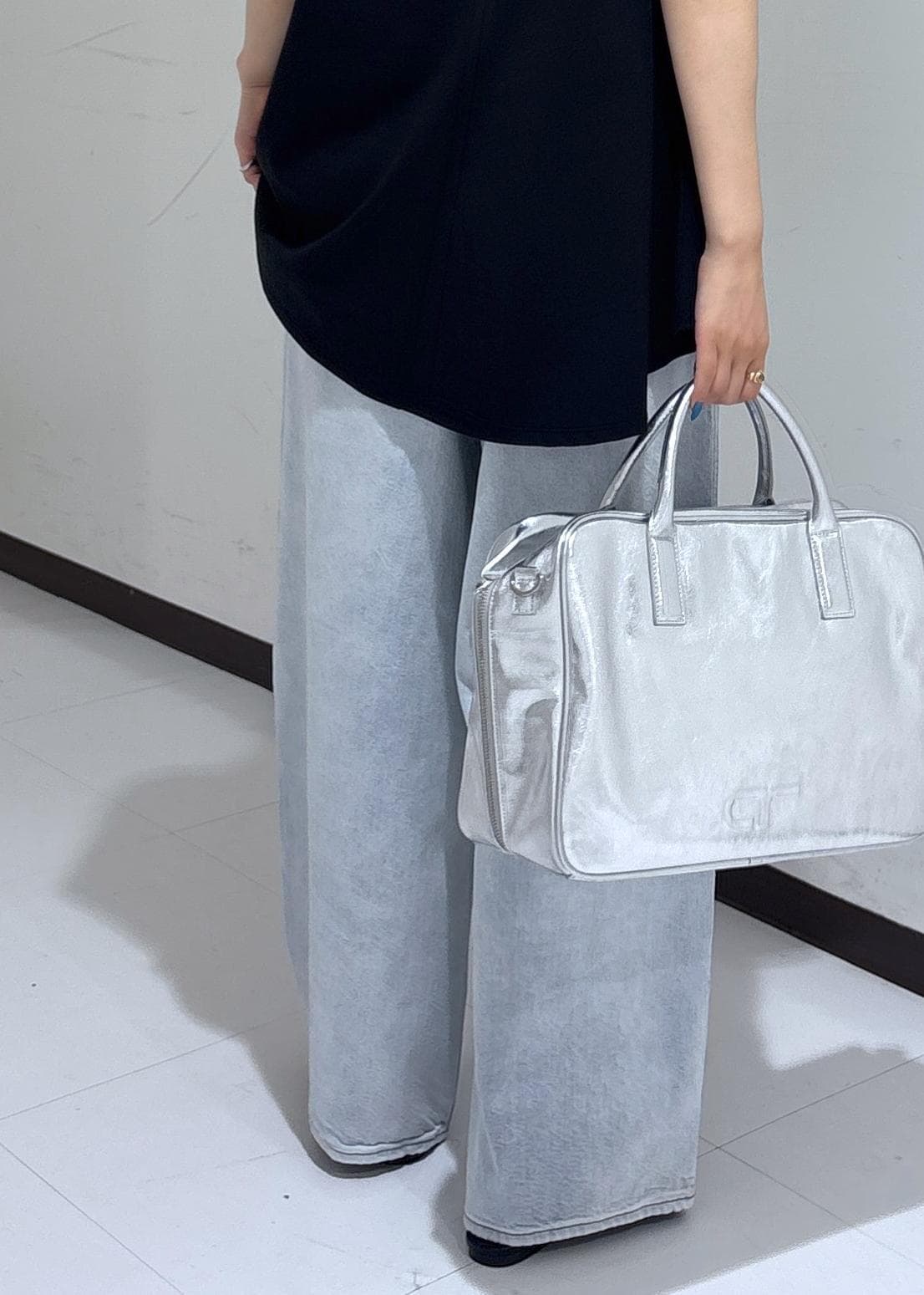ADAM ET ROPÉ FEMME【再入荷】・【サステナブル】ロゴボストンビッグバッグシルバー / F¥12,100レビュー大きめのボストンバッグです。
