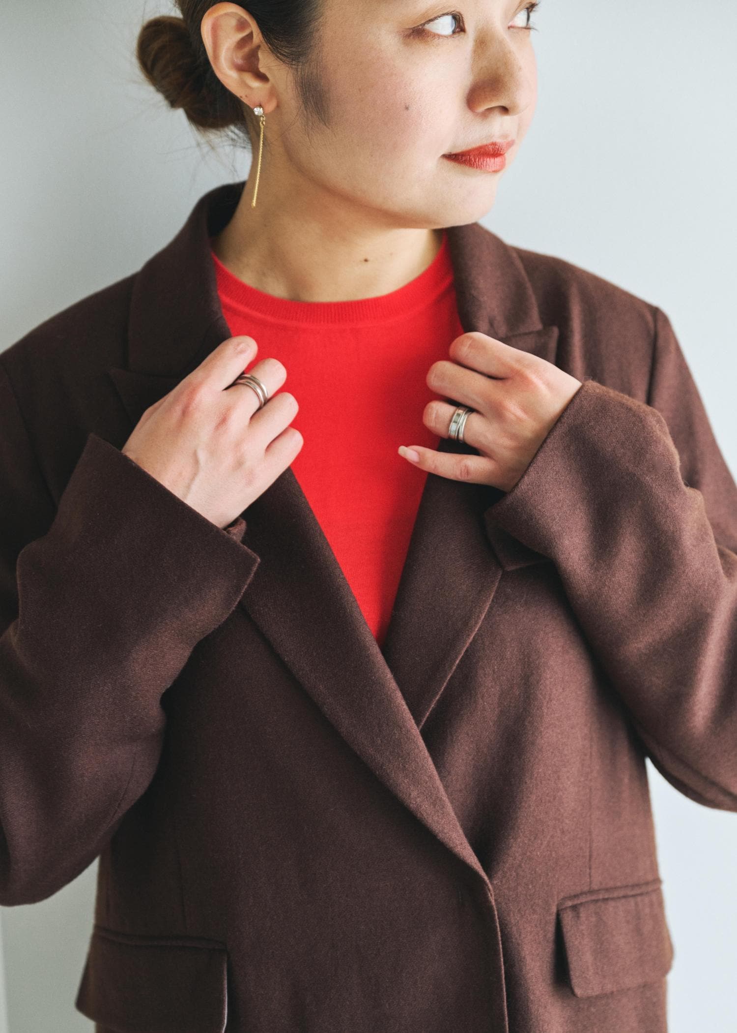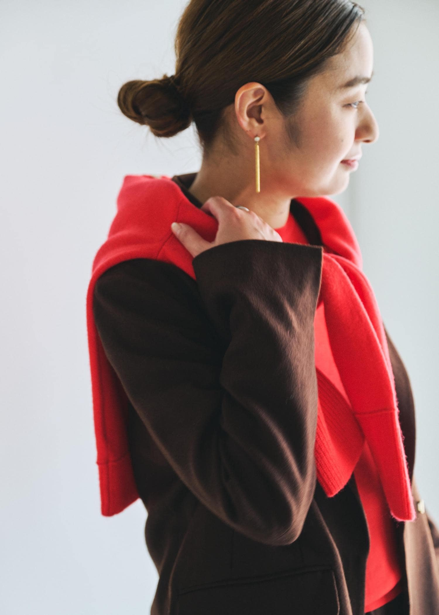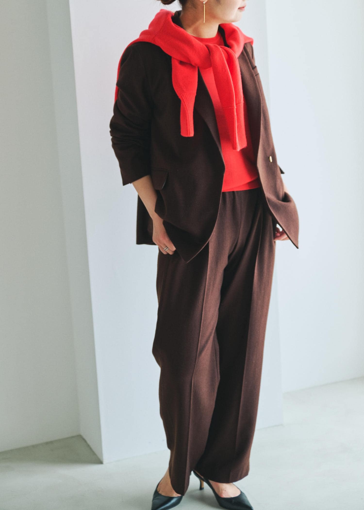 女性らしいブラウンと温かみのあるレッドの組み合わせ
