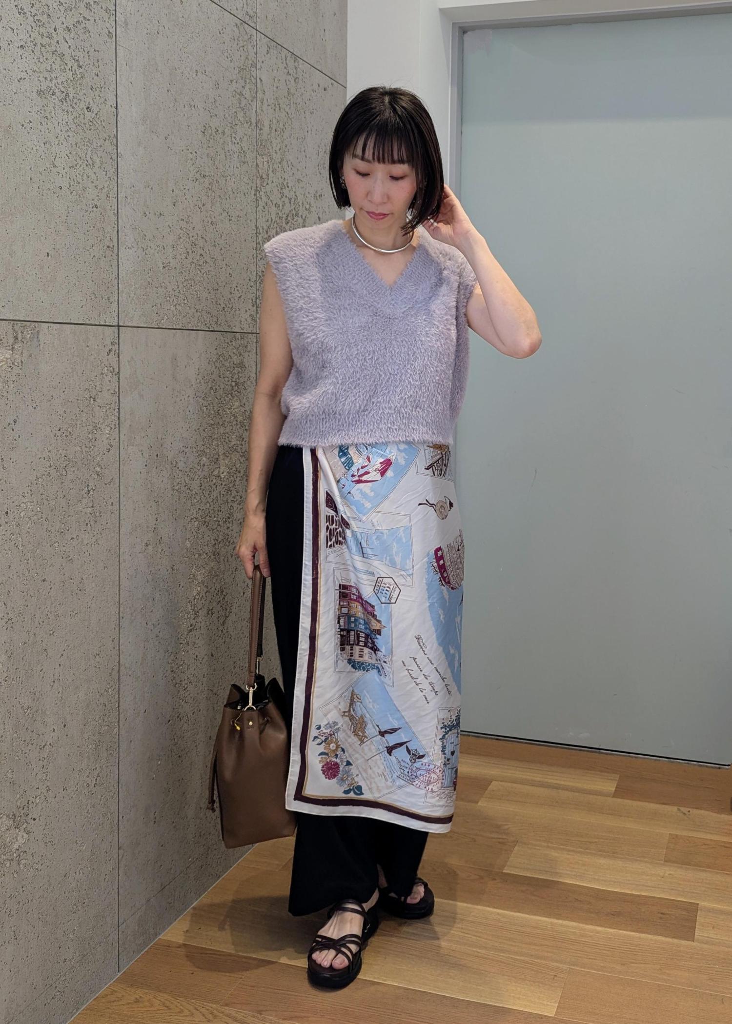 ROPÉ PICNICショートフェザーニットベストパープル系 / F¥3,993レビュー柔らかくてフワフワなので着心地抜群です!さり気ないラメ入りでかわいいです。コンパクトなサイズ感ですが、肩が隠れて着丈も腰まであるのでレイヤードでも一枚着でも◎