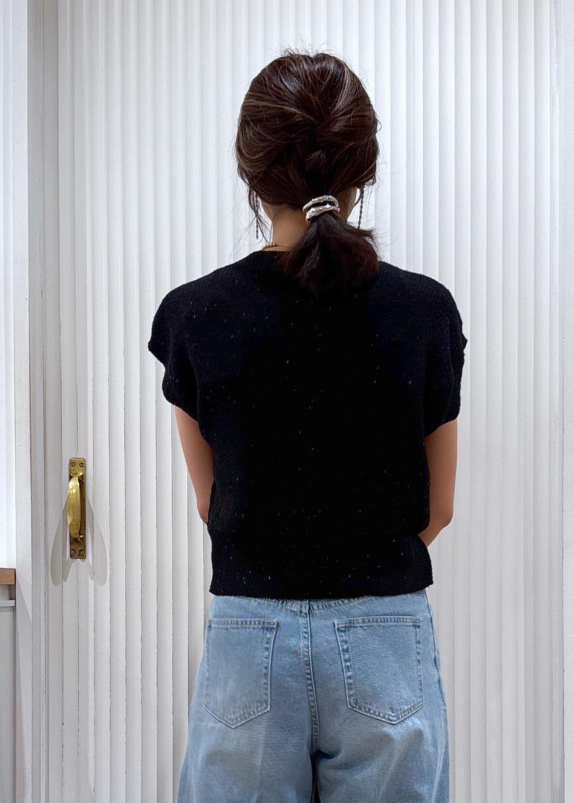 VISくるみ釦ニットトップスカーデ/洗えるブラック系 / F¥4,939レビュー身長164センチで腰骨ぐらいの着丈です。