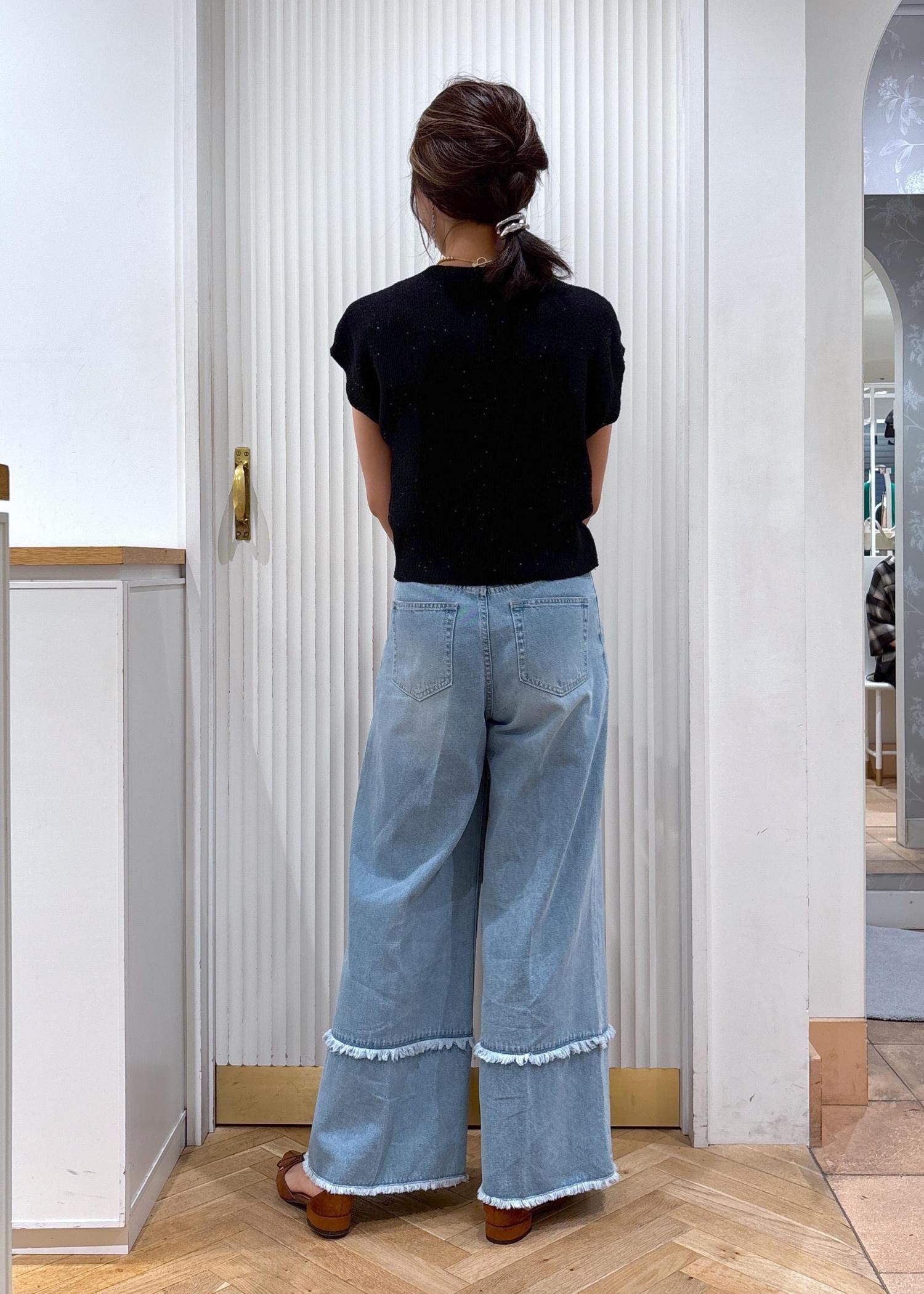 VISフリンジフレアデニムサックス / M¥4,395レビュー身長164センチ、Mサイズ着用です。