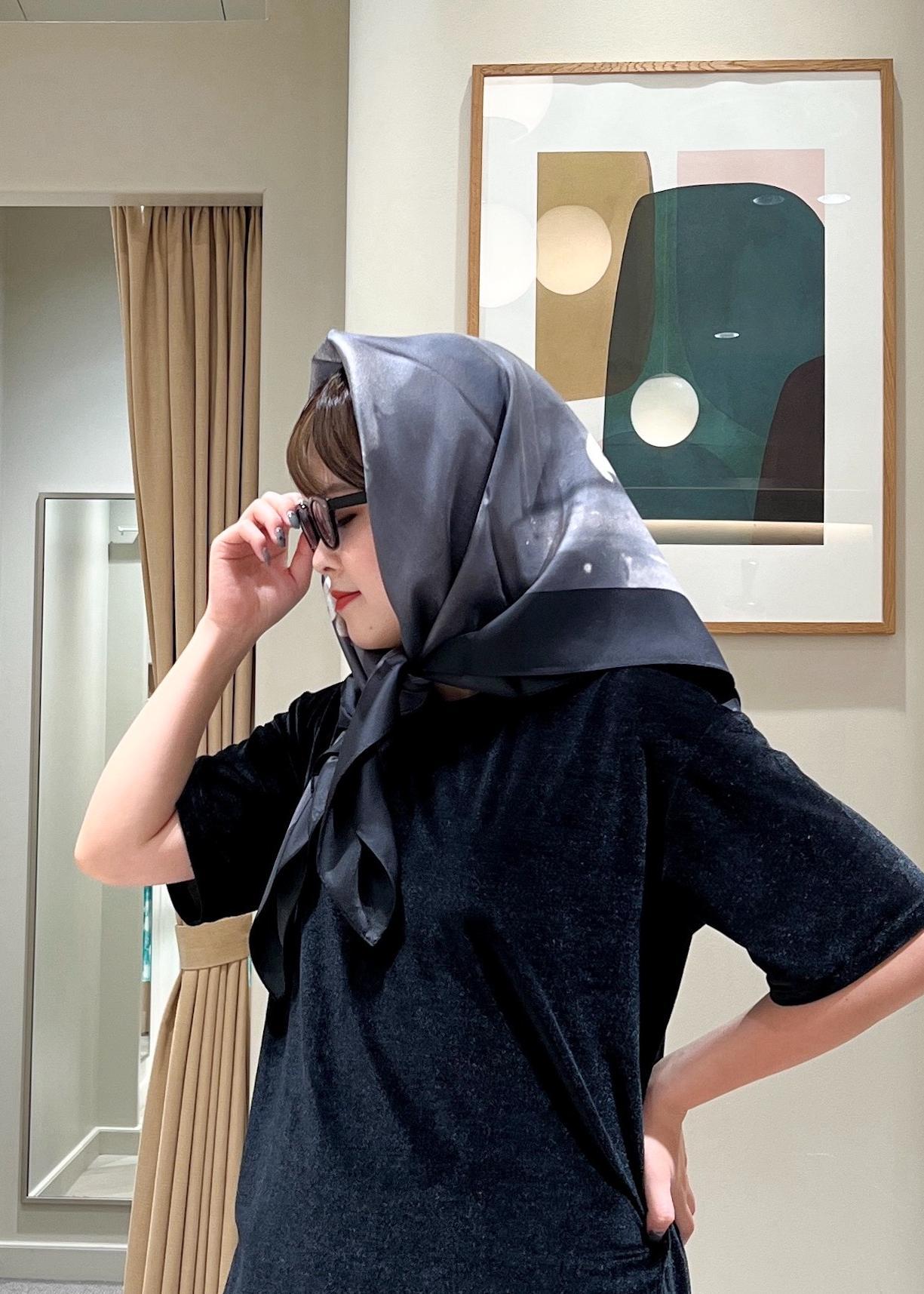 ROPÉ【Brigitte Bardot×ROPE'・コラボ】プリントシルクスカーフ/Lサイズブラック系 / F¥7,920レビュー88㎝×88㎝の大判サイズ。