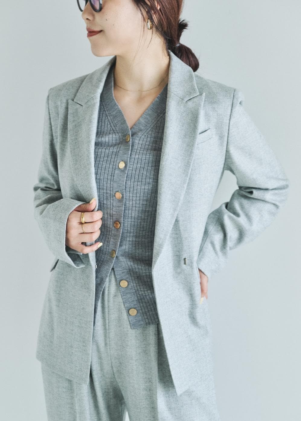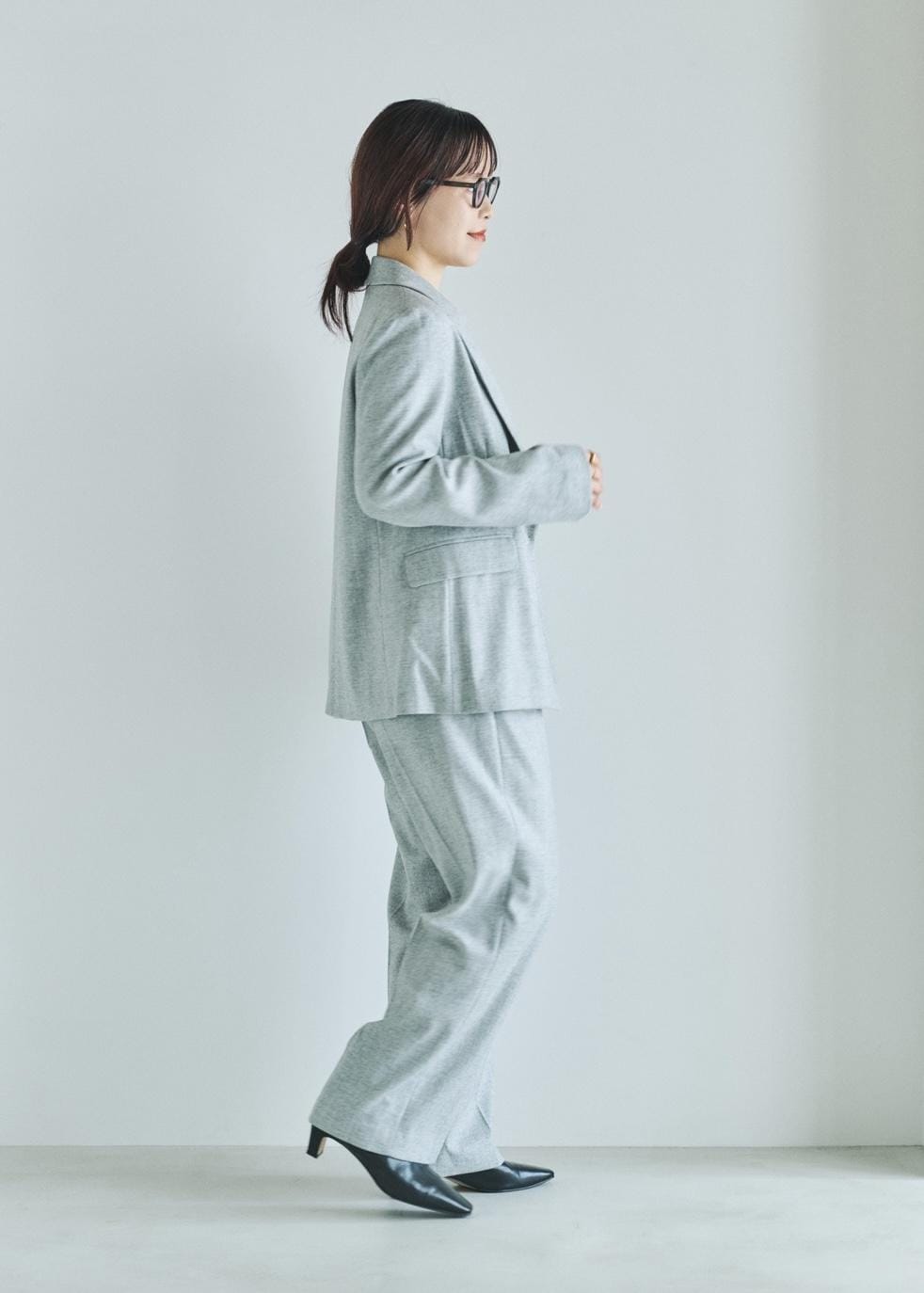 上品なシルエットのジャケット&パンツが