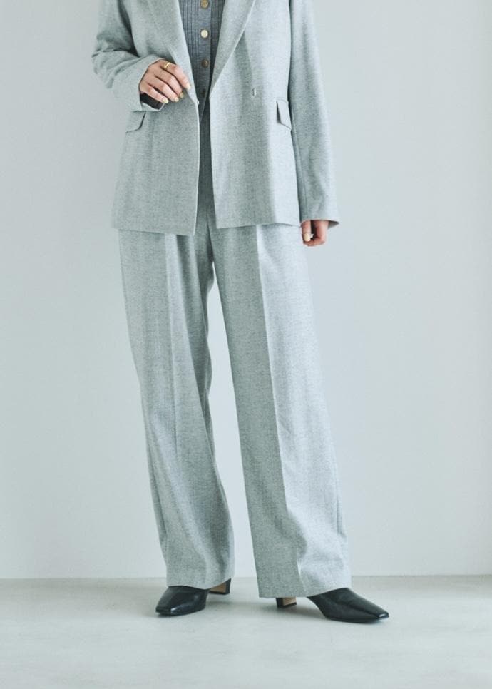 ROPÉウールフランネルタックイージーパンツ/イージーケア・セットアップ対応ライトグレー / 38¥25,300レビューサンプル38サイズを着用。