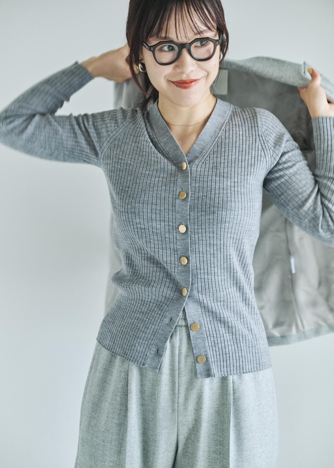 NEW!ROPÉハイゲージワイドリブニットカーディガングレー / F¥25,300レビュー着丈は骨盤が隠れるくらいのやや長めでお尻の半分までカバーできます◎