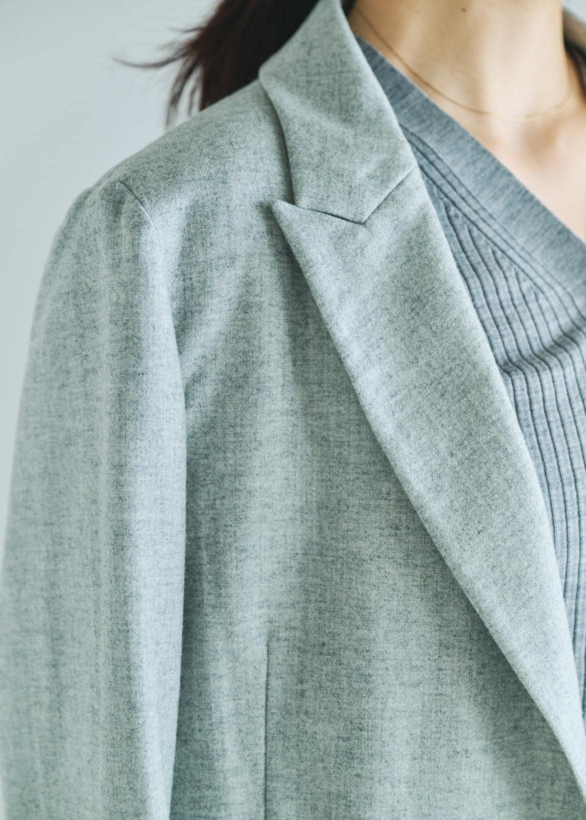 ROPÉウールフランネルセミダブルジャケット/セットアップ対応ライトグレー / 38¥44,000レビューサンプル38サイズを着用。