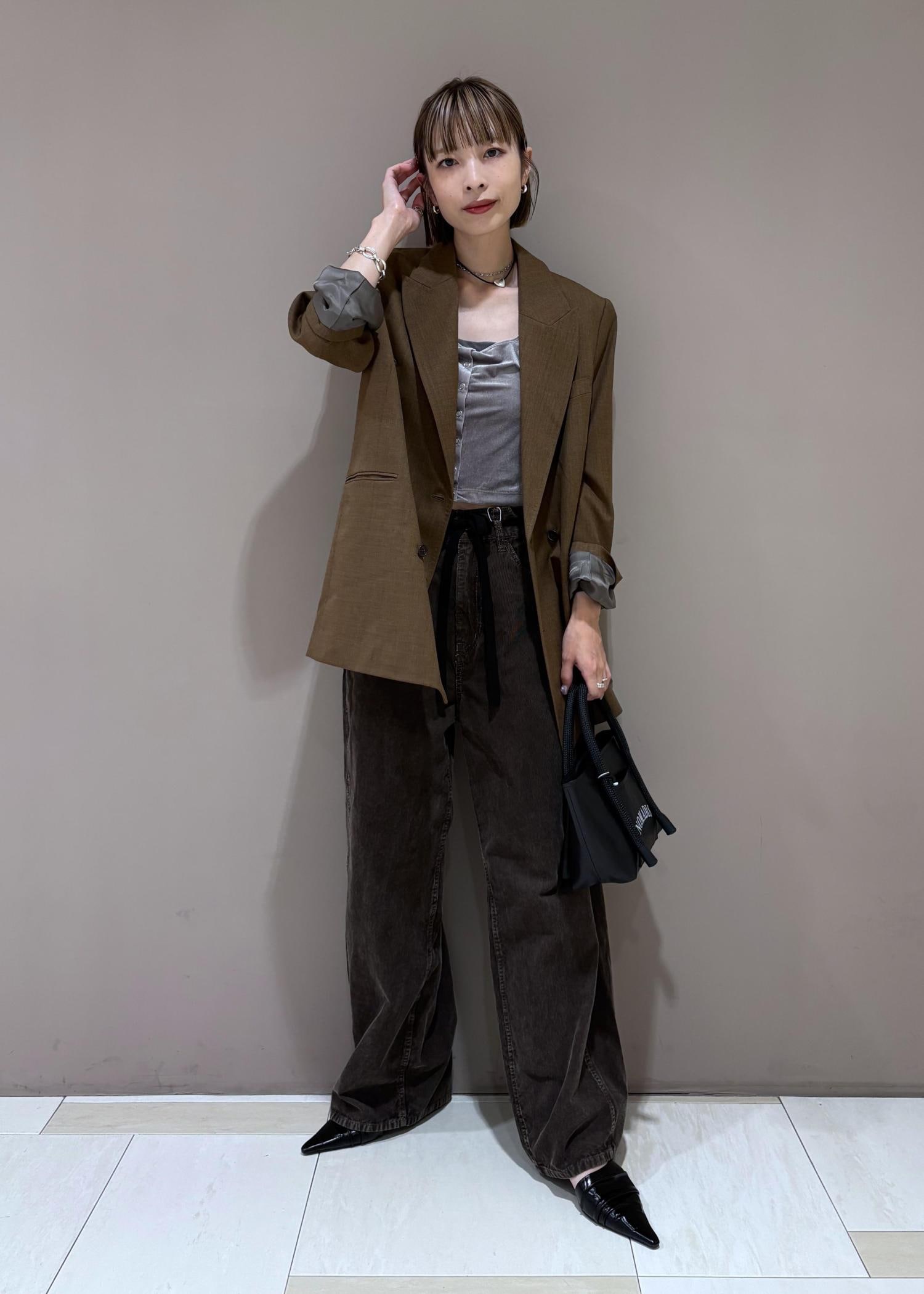 コーデュロイ素材ですが、ほっこりしすぎないのでかなり使いやすいです◎