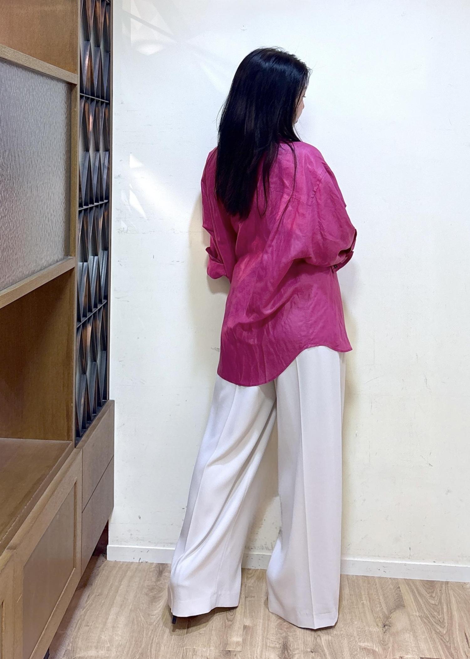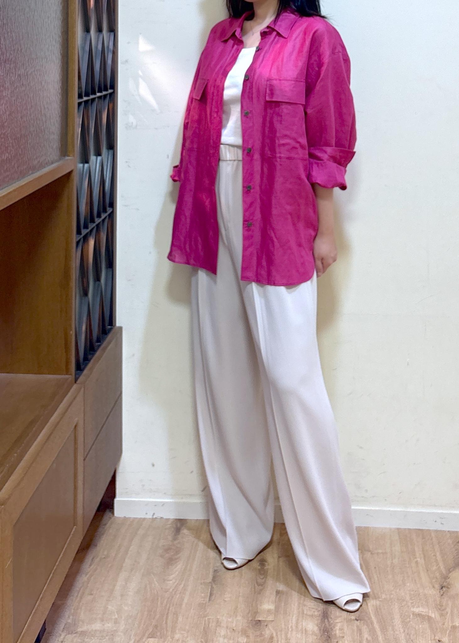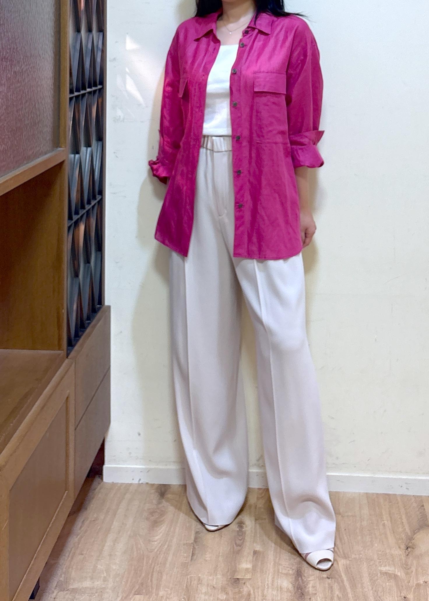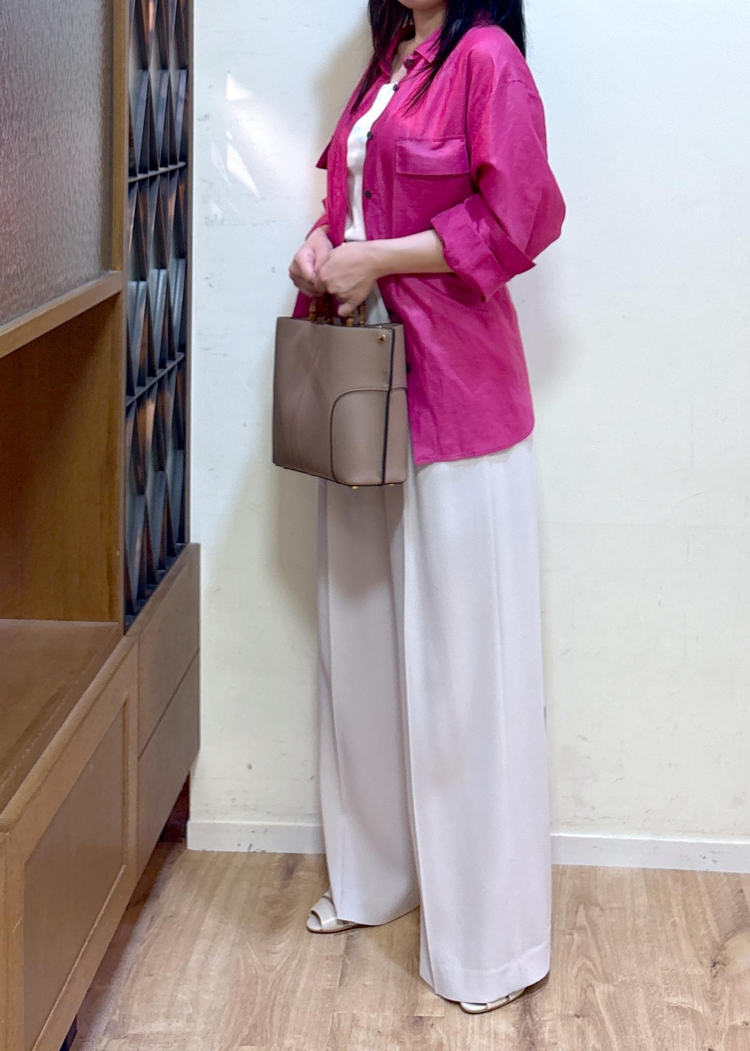 ナチュラルな光沢感のある上品なシャツコーデです♪