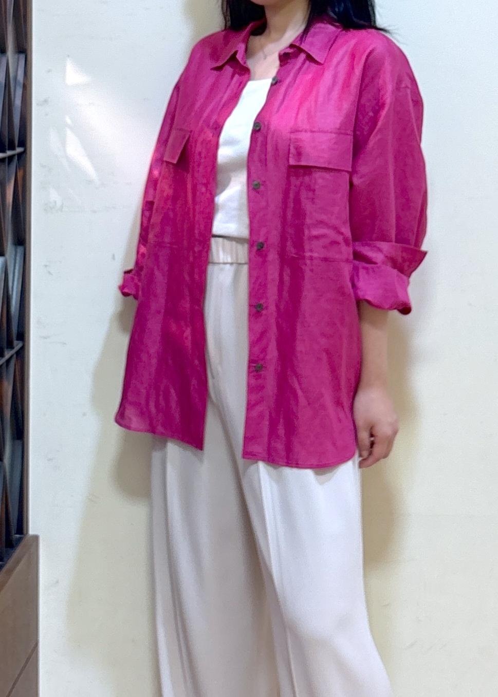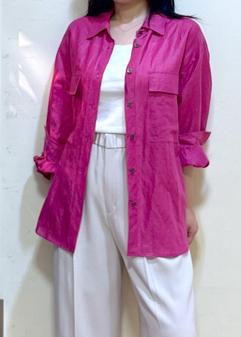 アウトレットROPÉブライトリネン フラップシャツブラウス/洗えるピンク / F¥16,500レビュー身長152cm Fサイズ着用