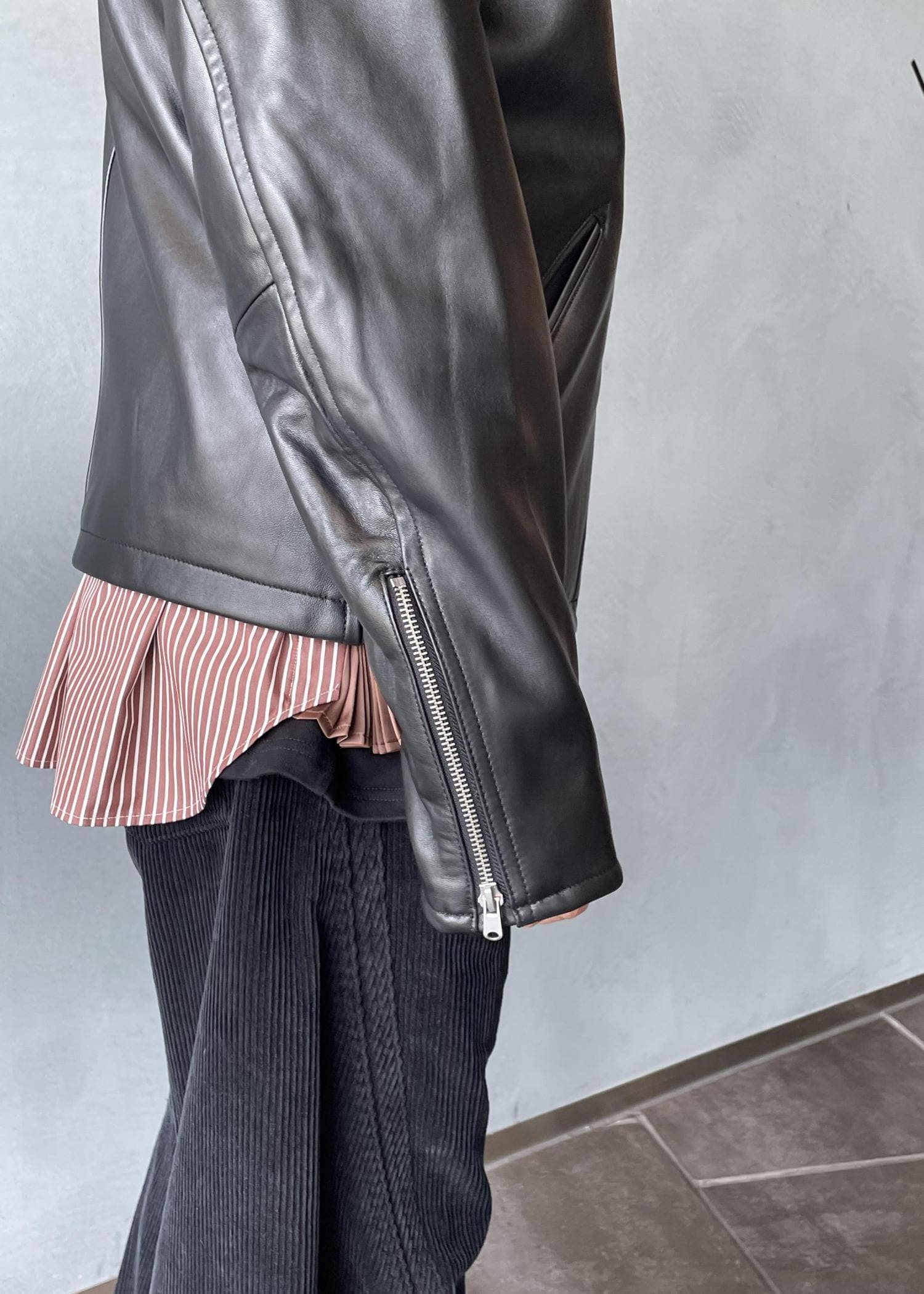 袖は長めなので袖口でクシャッとして着ると良いです。 -