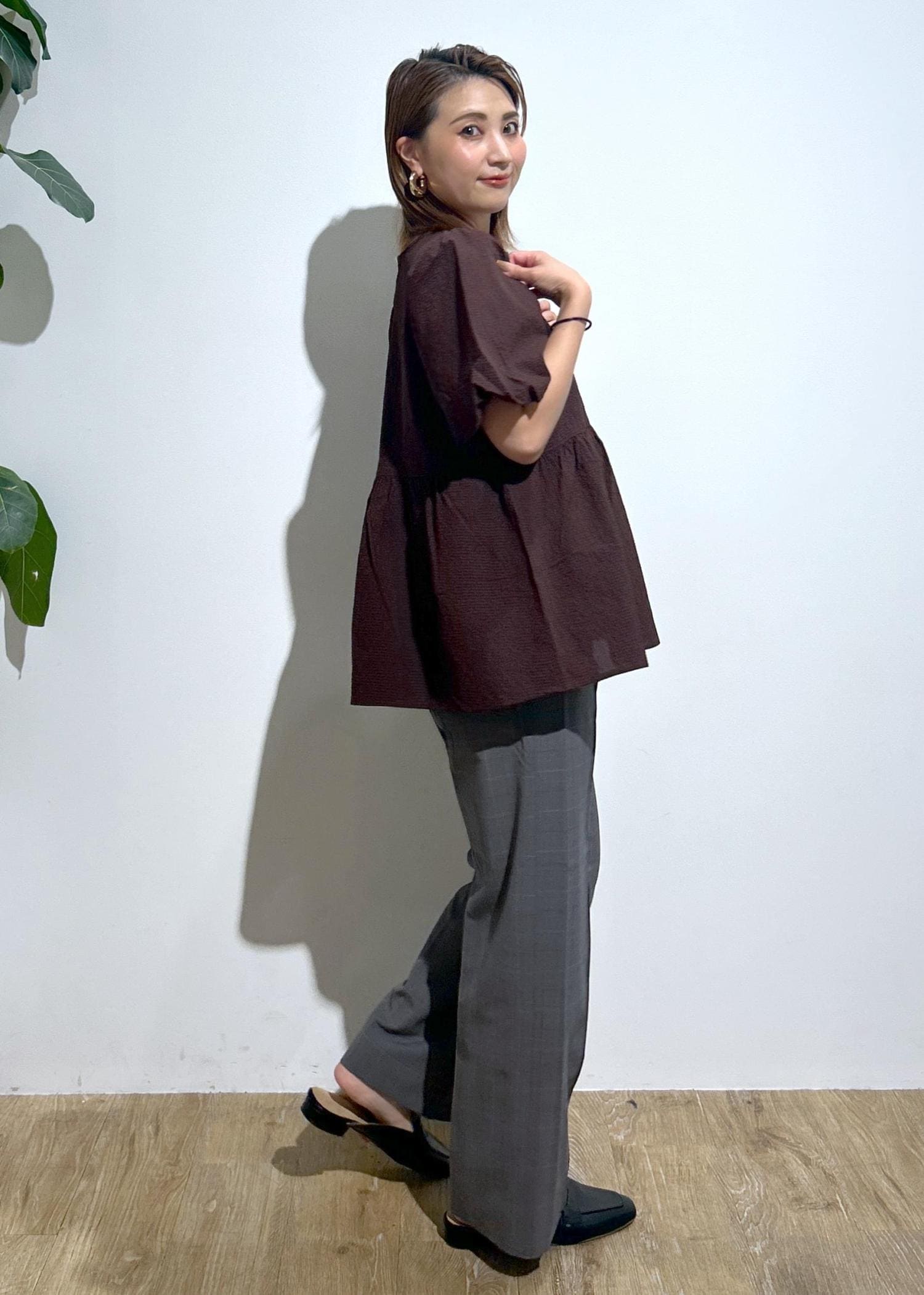 切り替えがあり下に広がるペプラムシルエットはパンツのとの相性抜群です♡ -