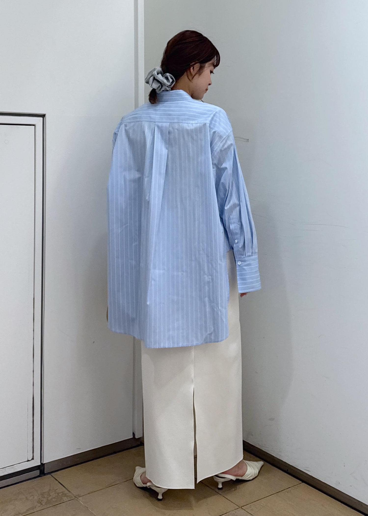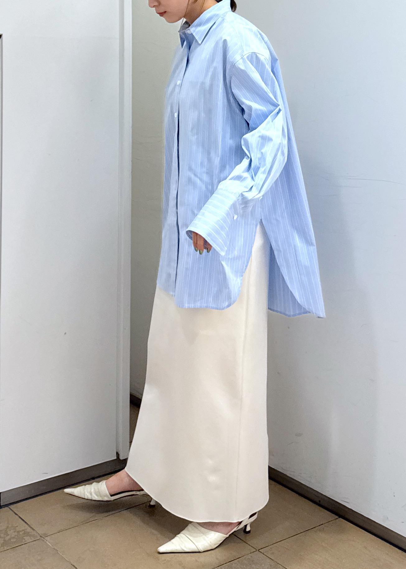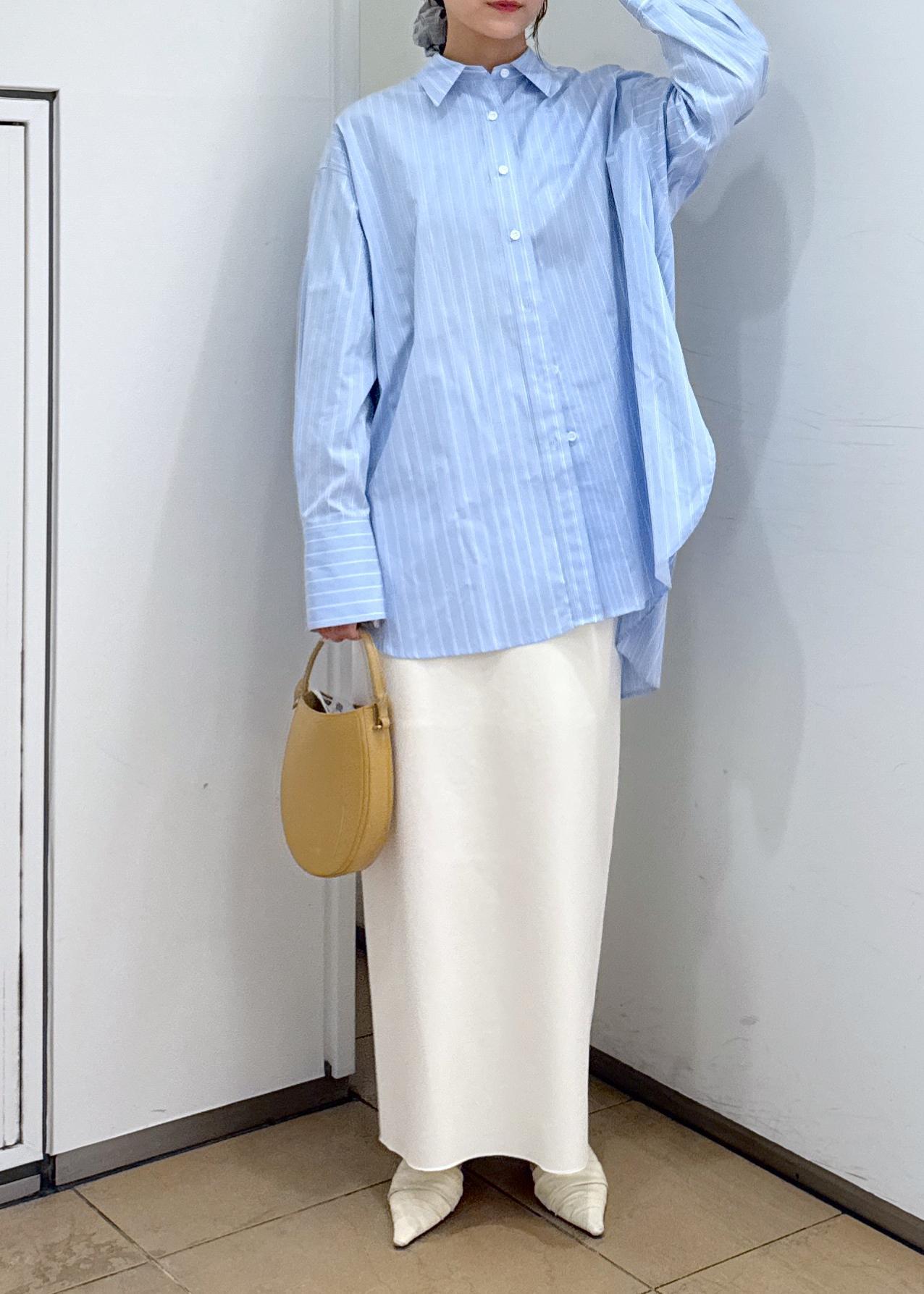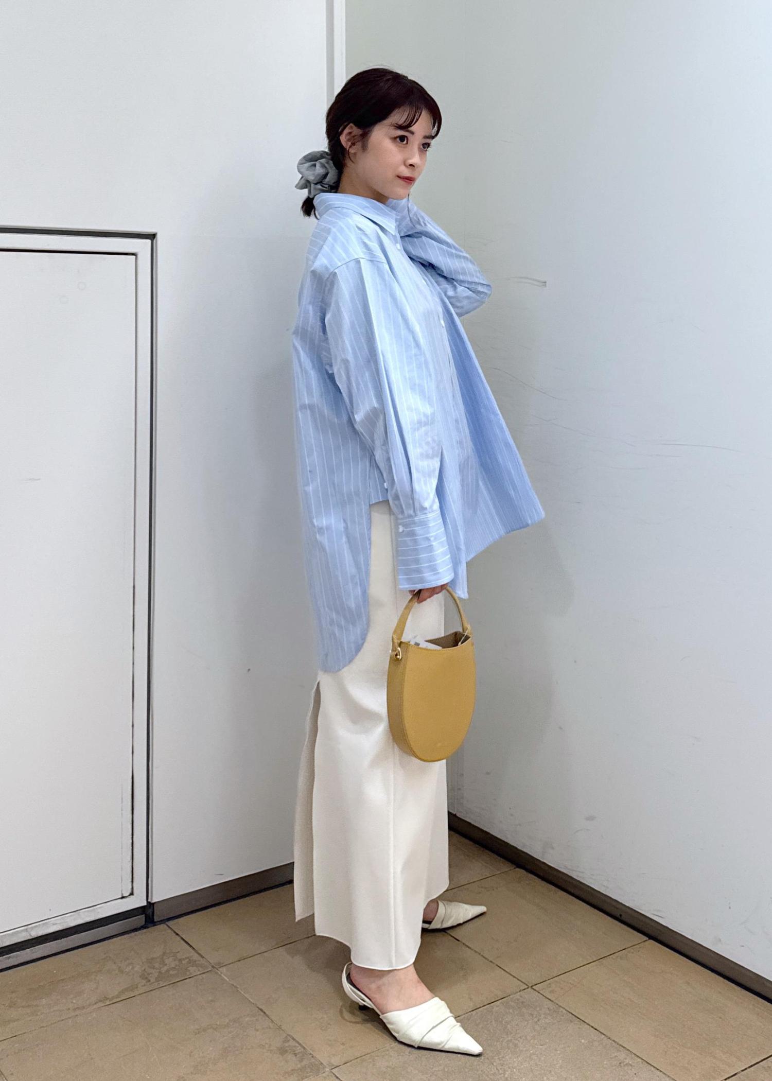 オーバーサイズで丈も長めですが、スッキリとしたスカートのシルエットともバランス◎です。