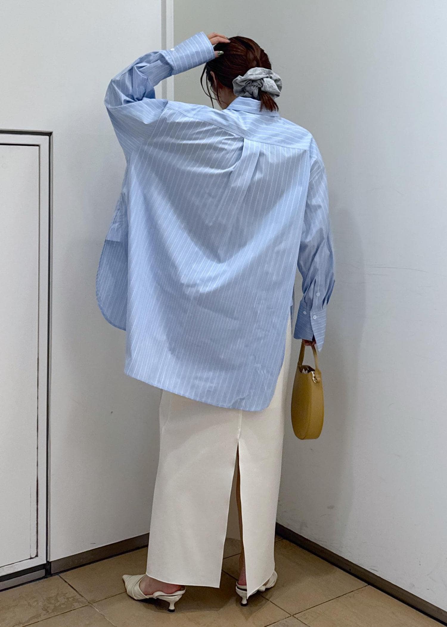 おしりがすっぽり隠れるくらいオーバーサイズなシャツです。